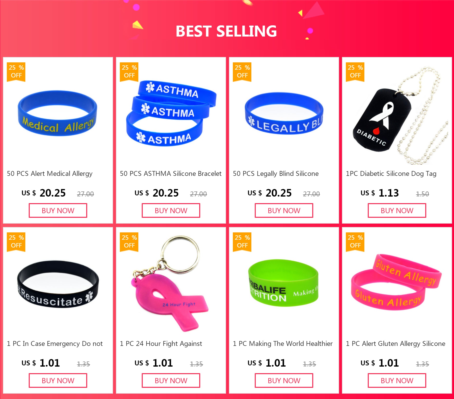 Nos bracelets en silicone remplis d'encre en relief sont facilement stérilisés et sont 100 % hypoallergéniques (sans danger pour le corps).