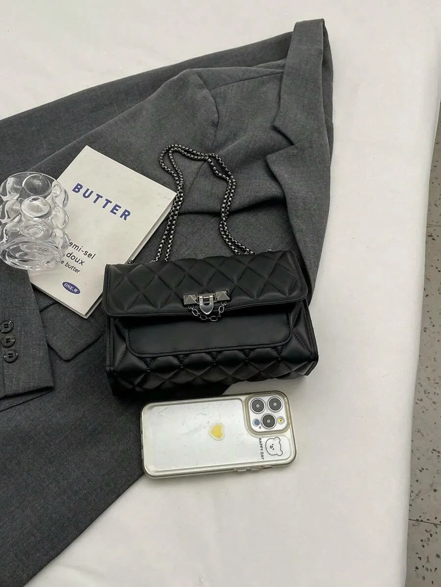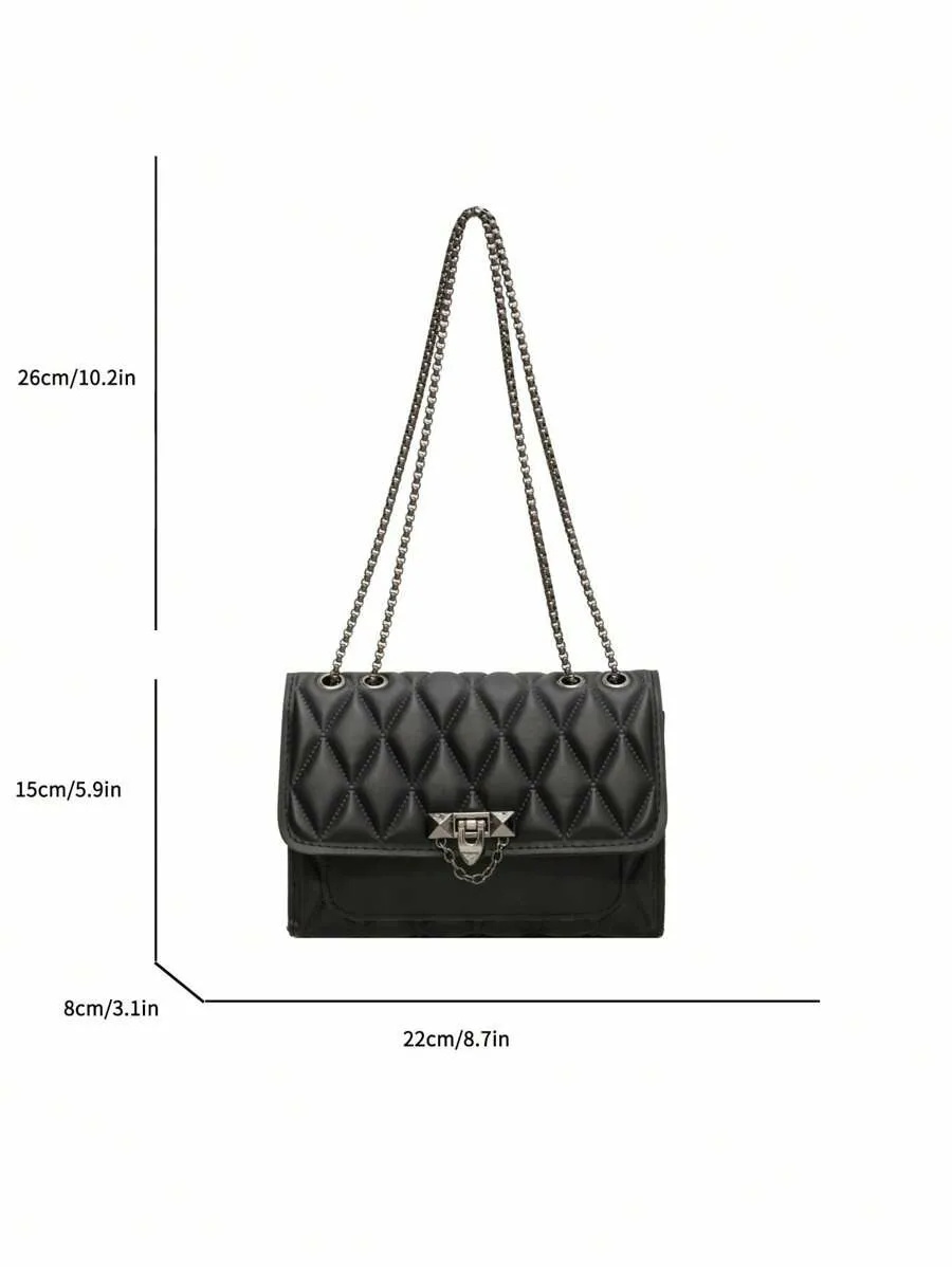 1 sac à bandoulière simple et élégant en grille de diamant, sac à bandoulière avec chaîne en métal, adapté à un usage quotidien de loisirs pour femmes-A-DH