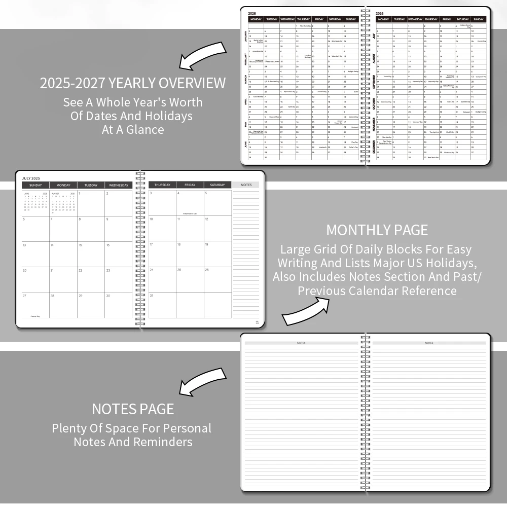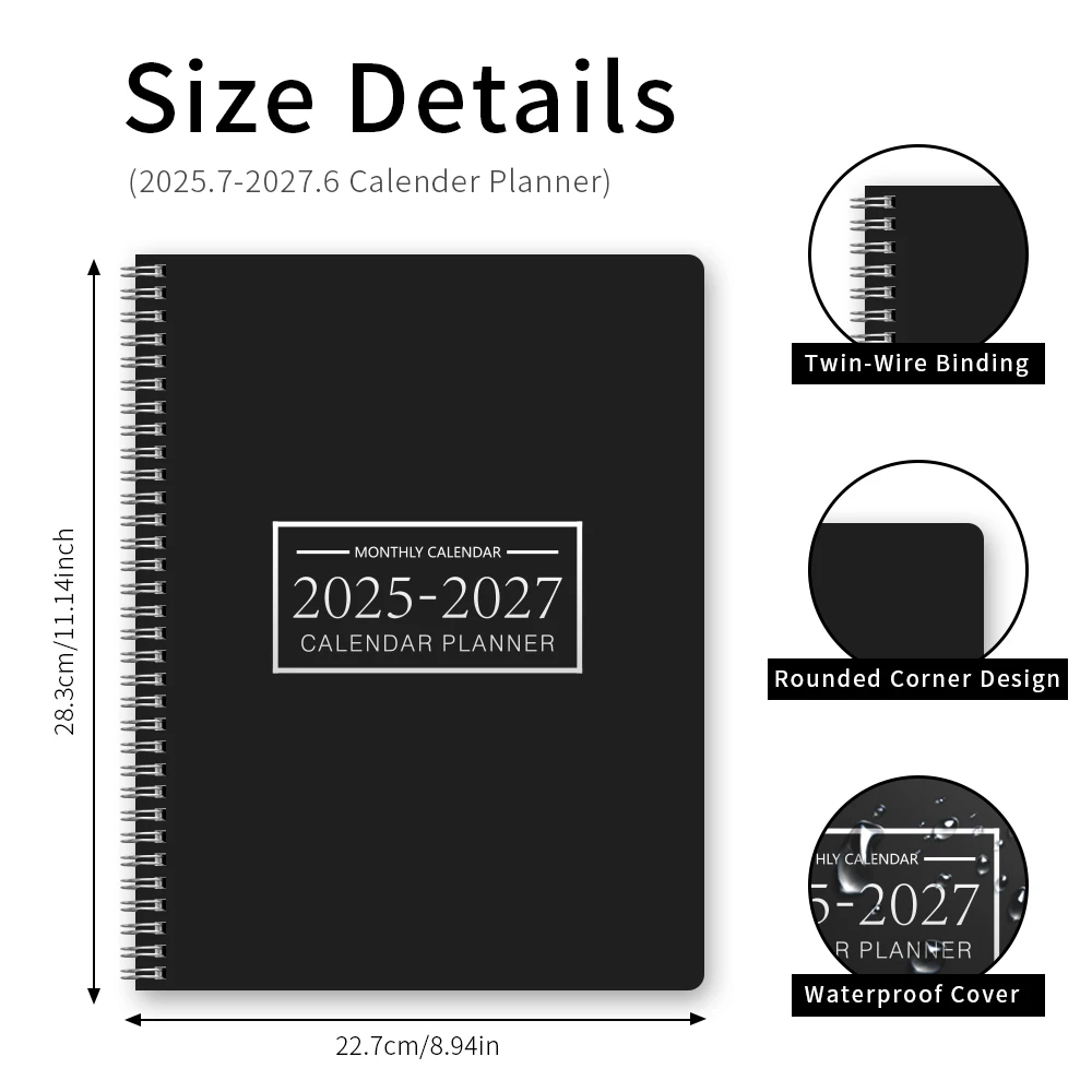 1Pc A4 2025.7-2027.6 Planificateur mensuel et calendrier 2 ans mensuels à partir de 2025 juin. 2027, 24 mensuels, avec 3 autocollants