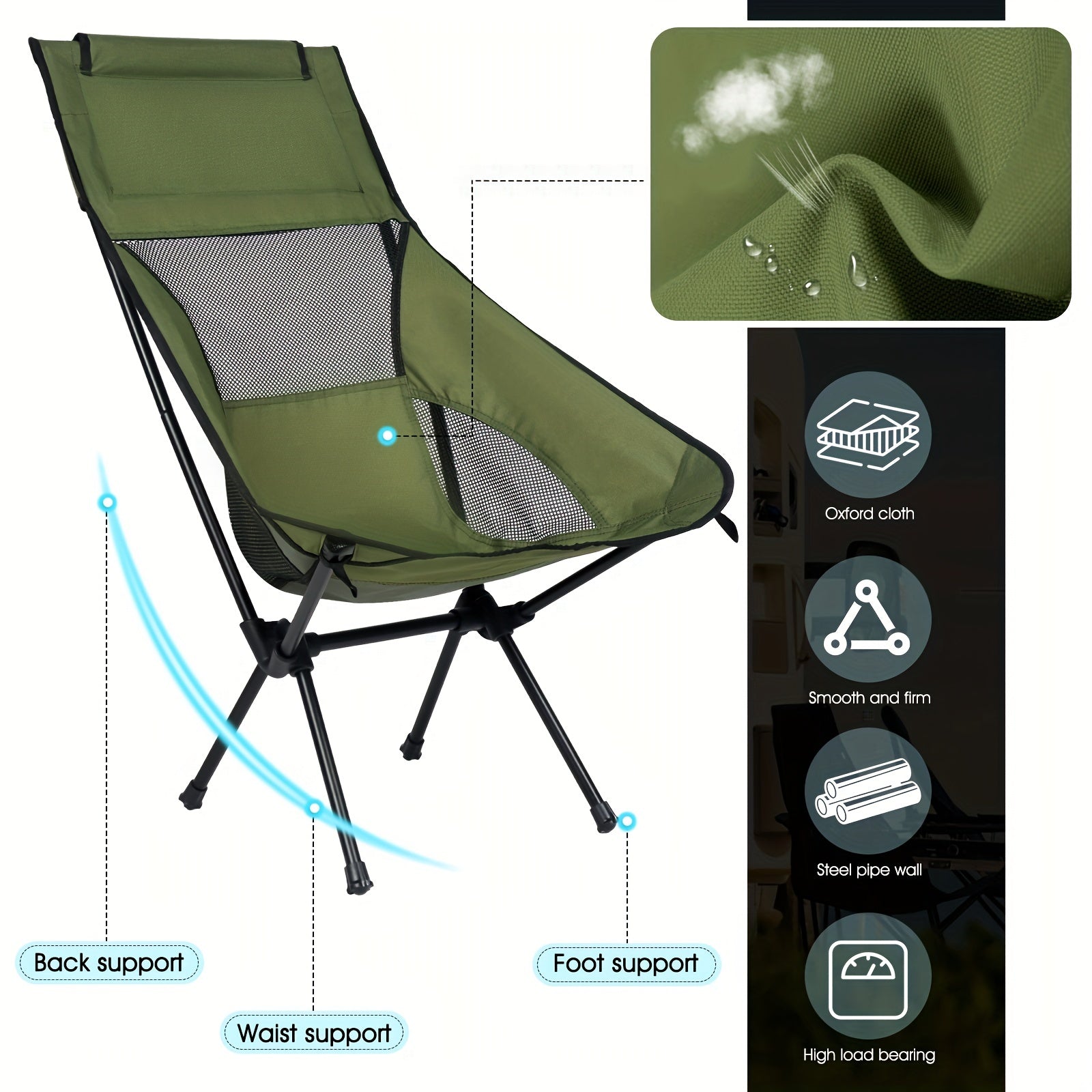 1pc Portable Folding Camping Chair, Lightweight Collapsible Chair For Adult, Comfortable High Back Chair For Outdoor Hiking Fishing Picnic