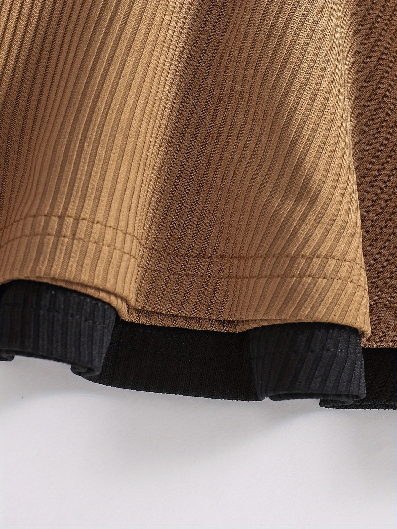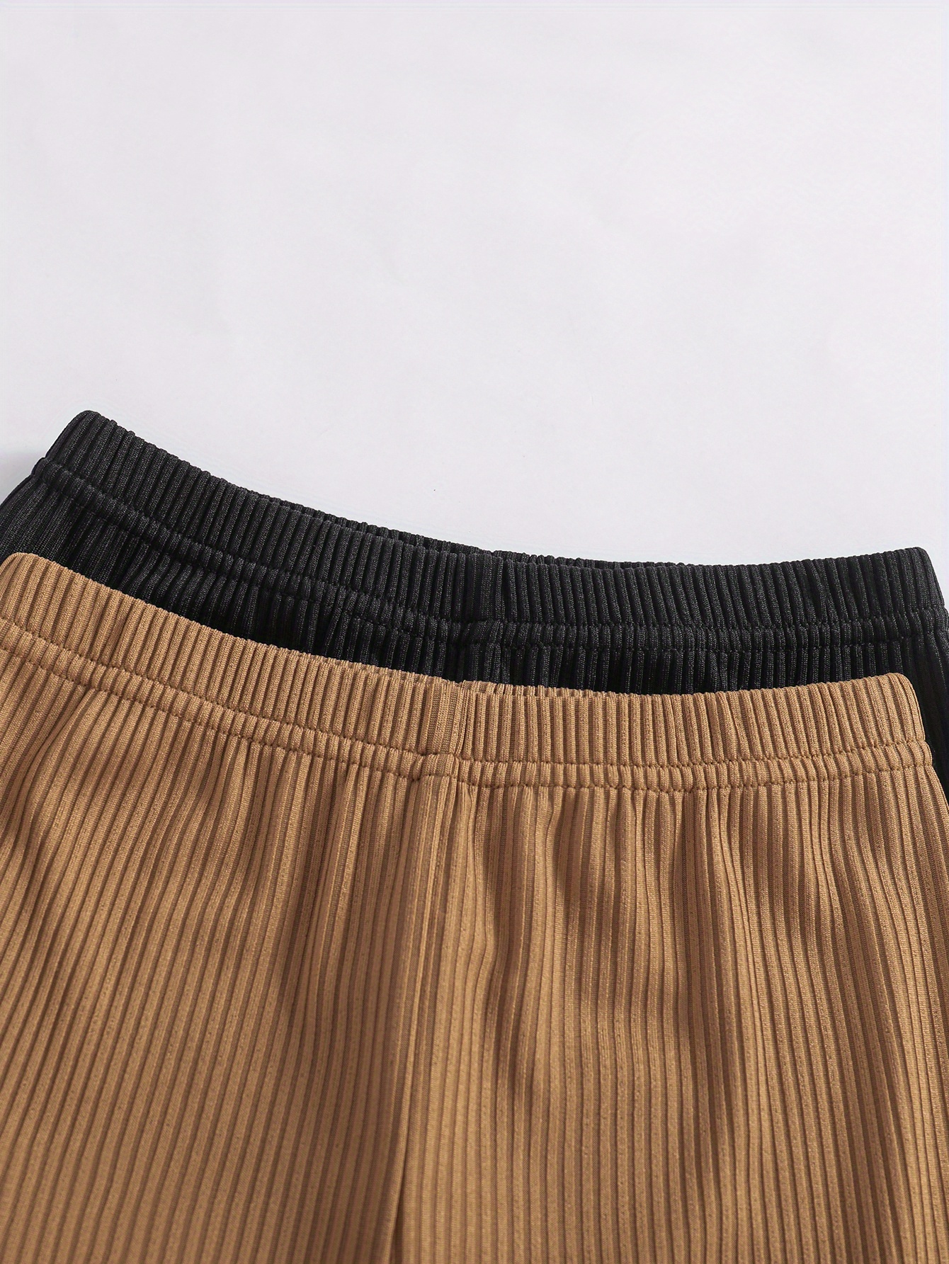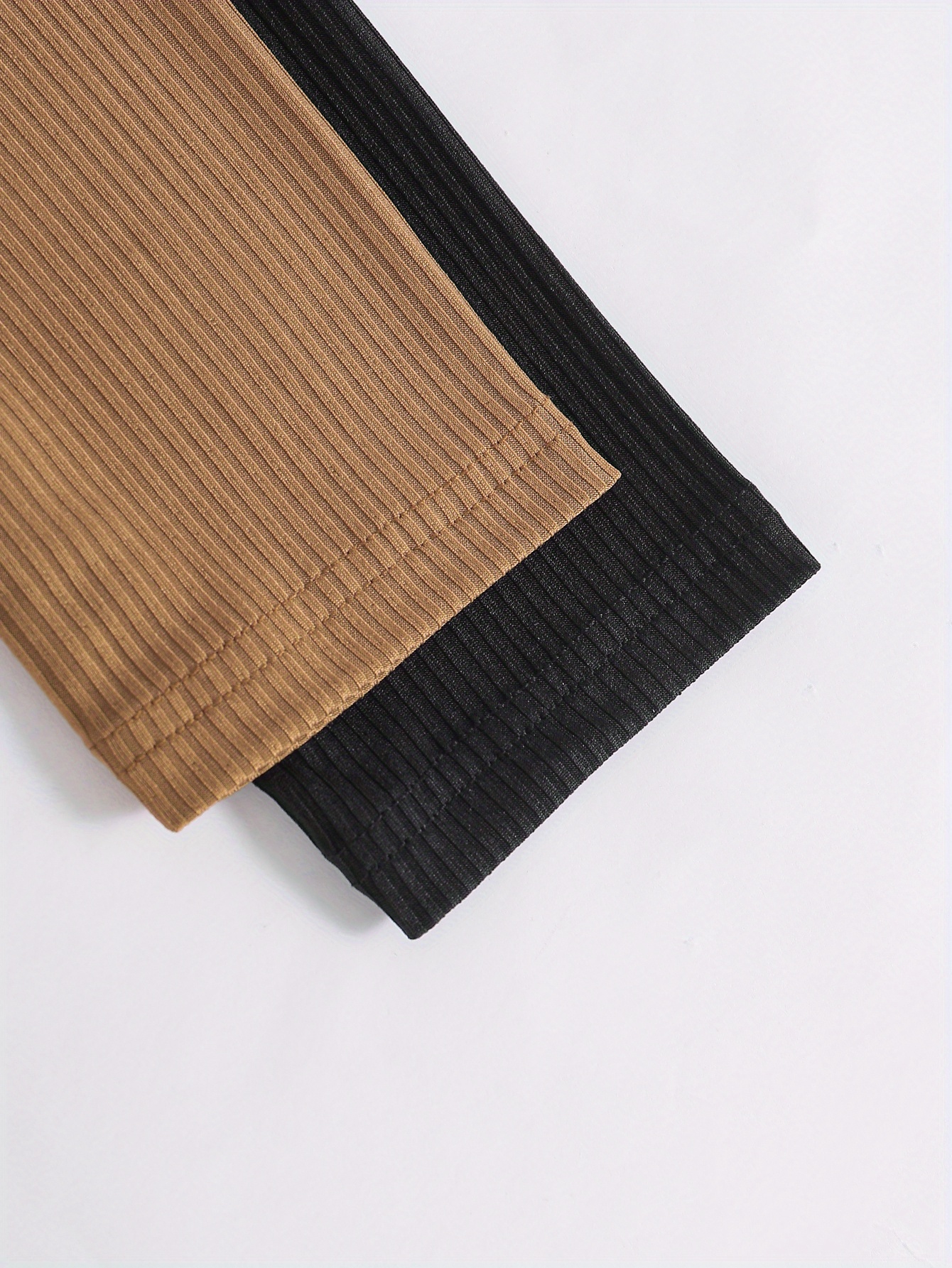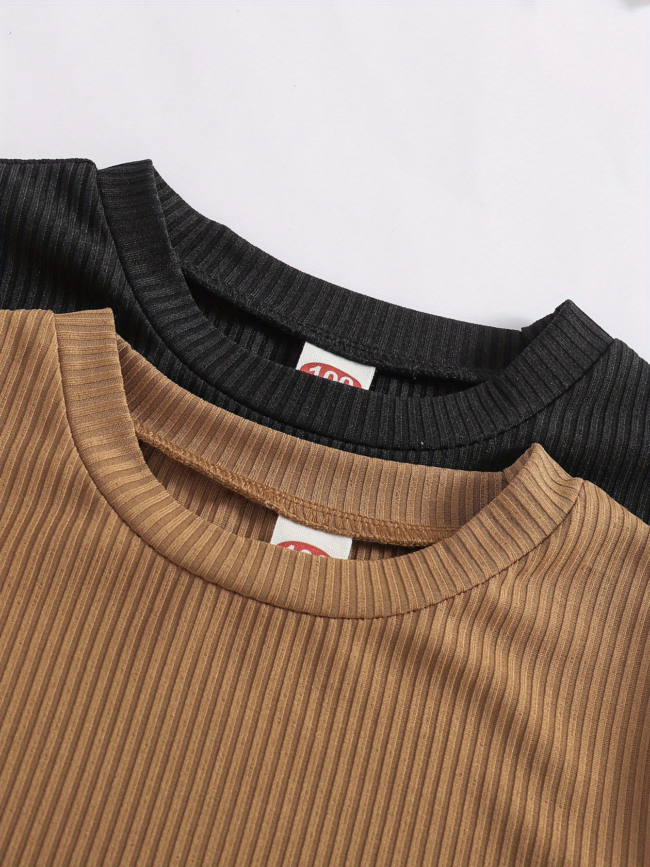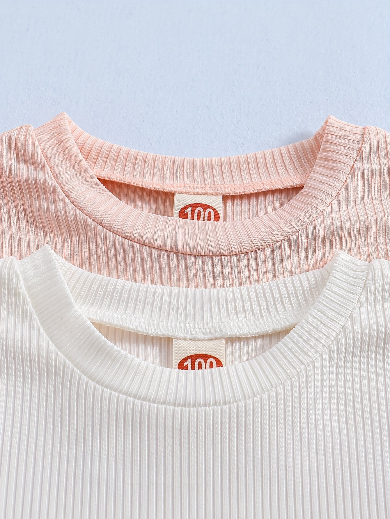 2 Sets Girl's Ribbed Outfit, Peplum Top & Pants Set, Casual Toddler Kid's Clothes For Spring Fall