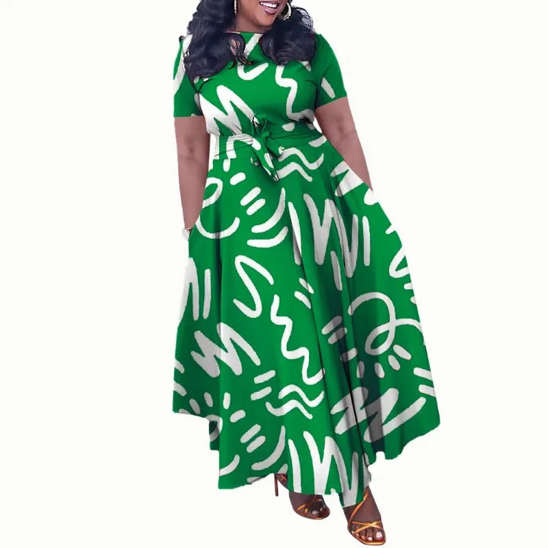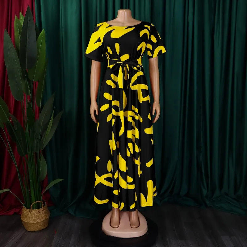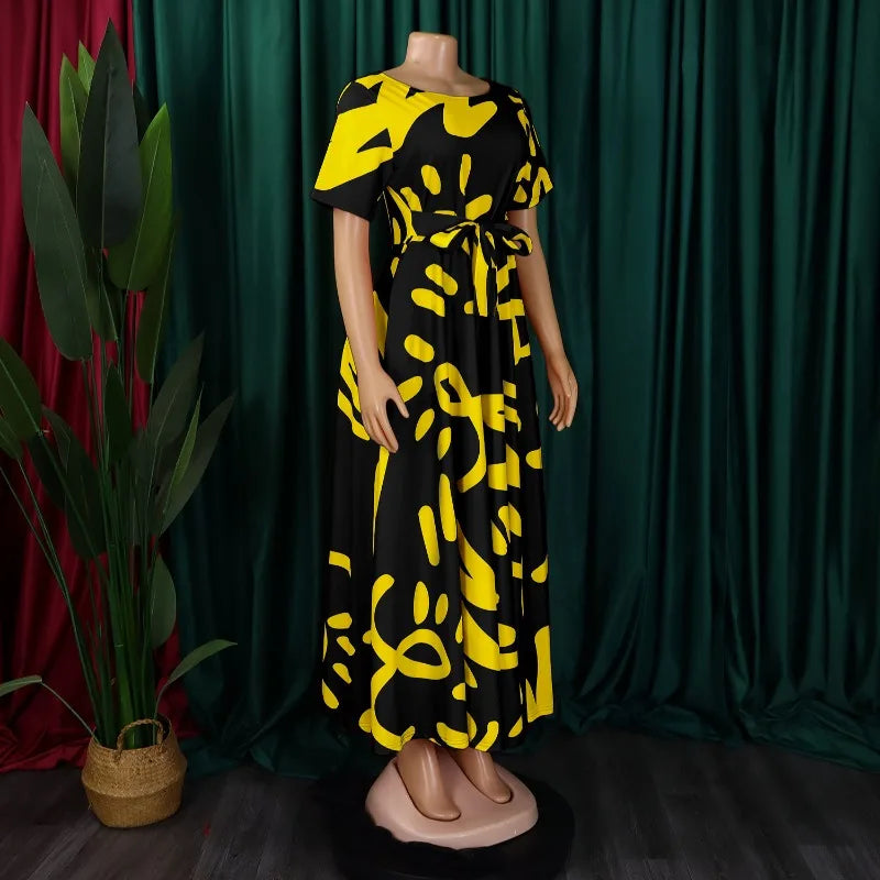 2025 Dashiki mode ceinturé Maxi longue Robe de soirée Vintage imprimé Robe d'été décontracté robes Robe africaine Robe d'été femmes Robe