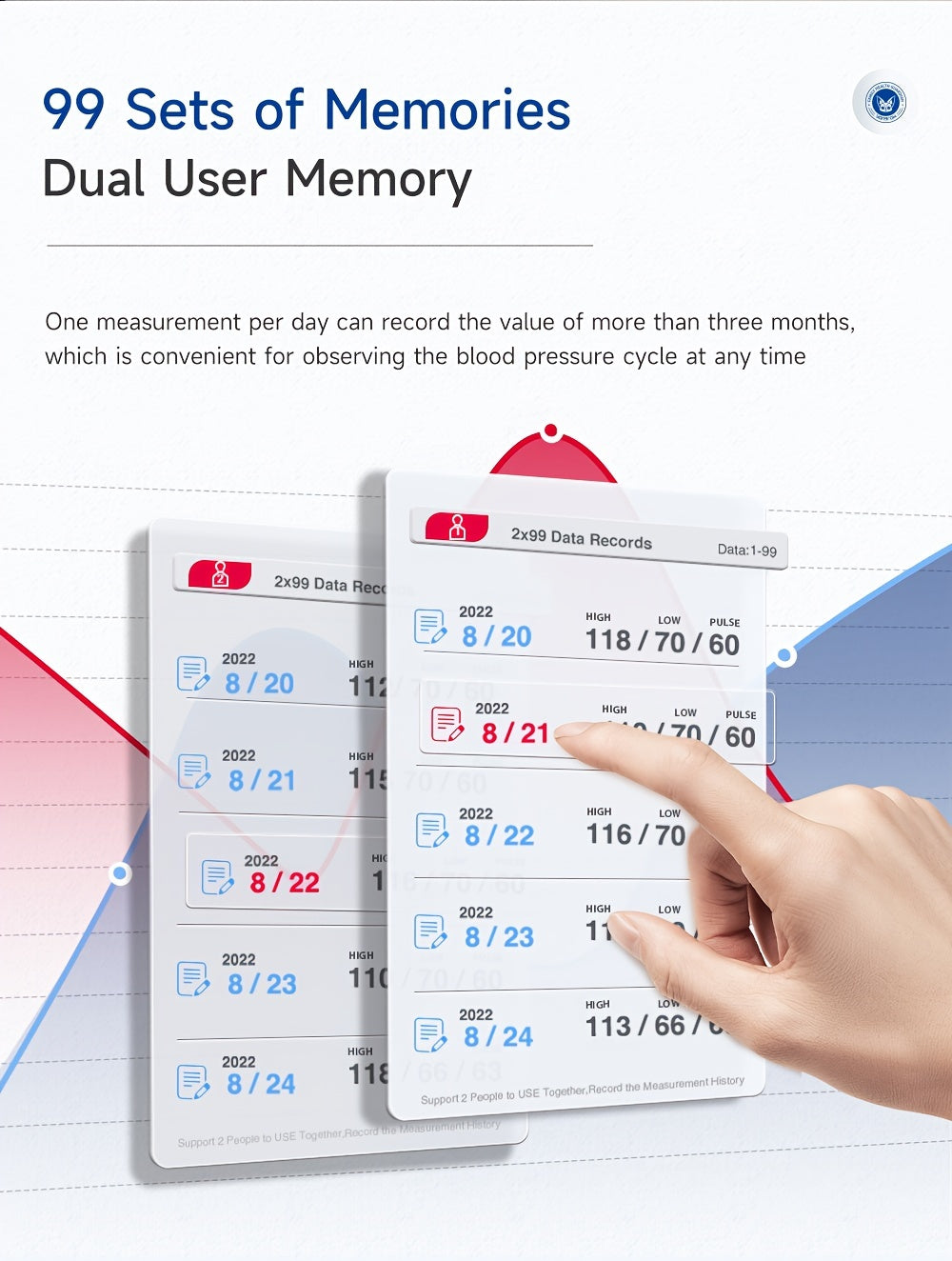 One measurement per day can record the value of more than three months, which is convenient for observing the blood pressure cycle at any time.