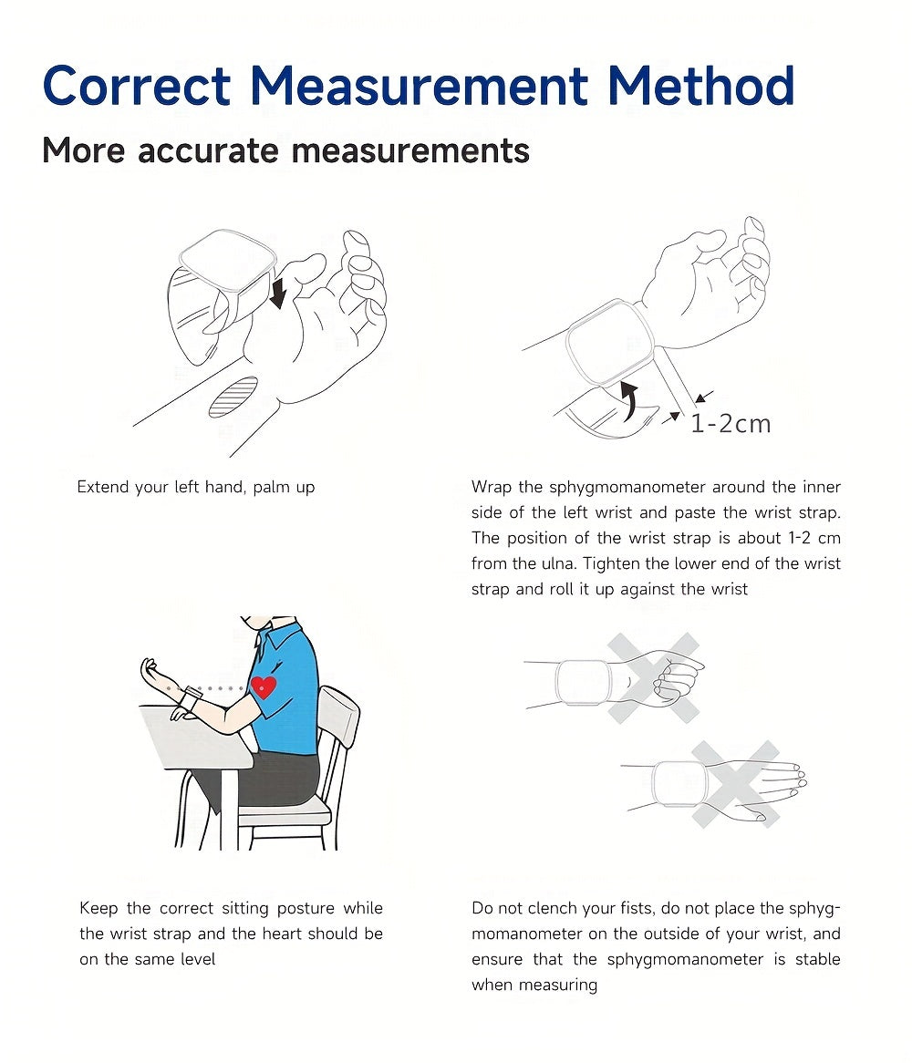 3.Keep the correct sitting posture while the wrist strap and the heart should be on the same level.