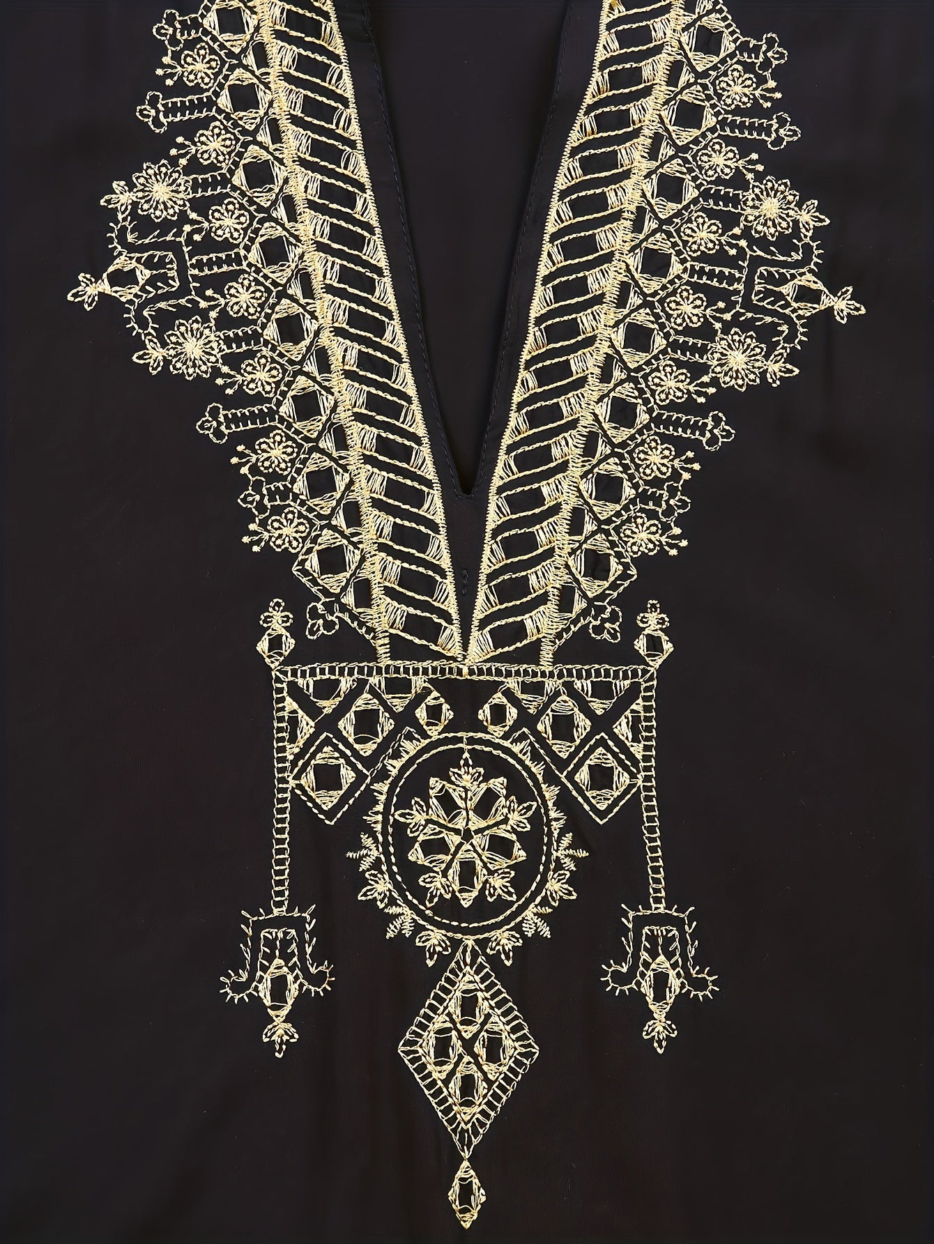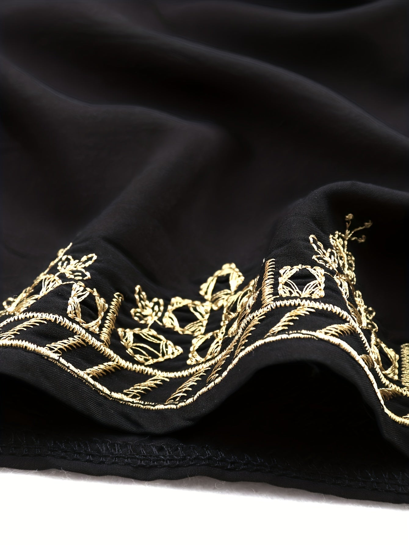 Bohemian Golden Embroidered Plus Size Maxi Dress with Bat Sleeves for Ramadan