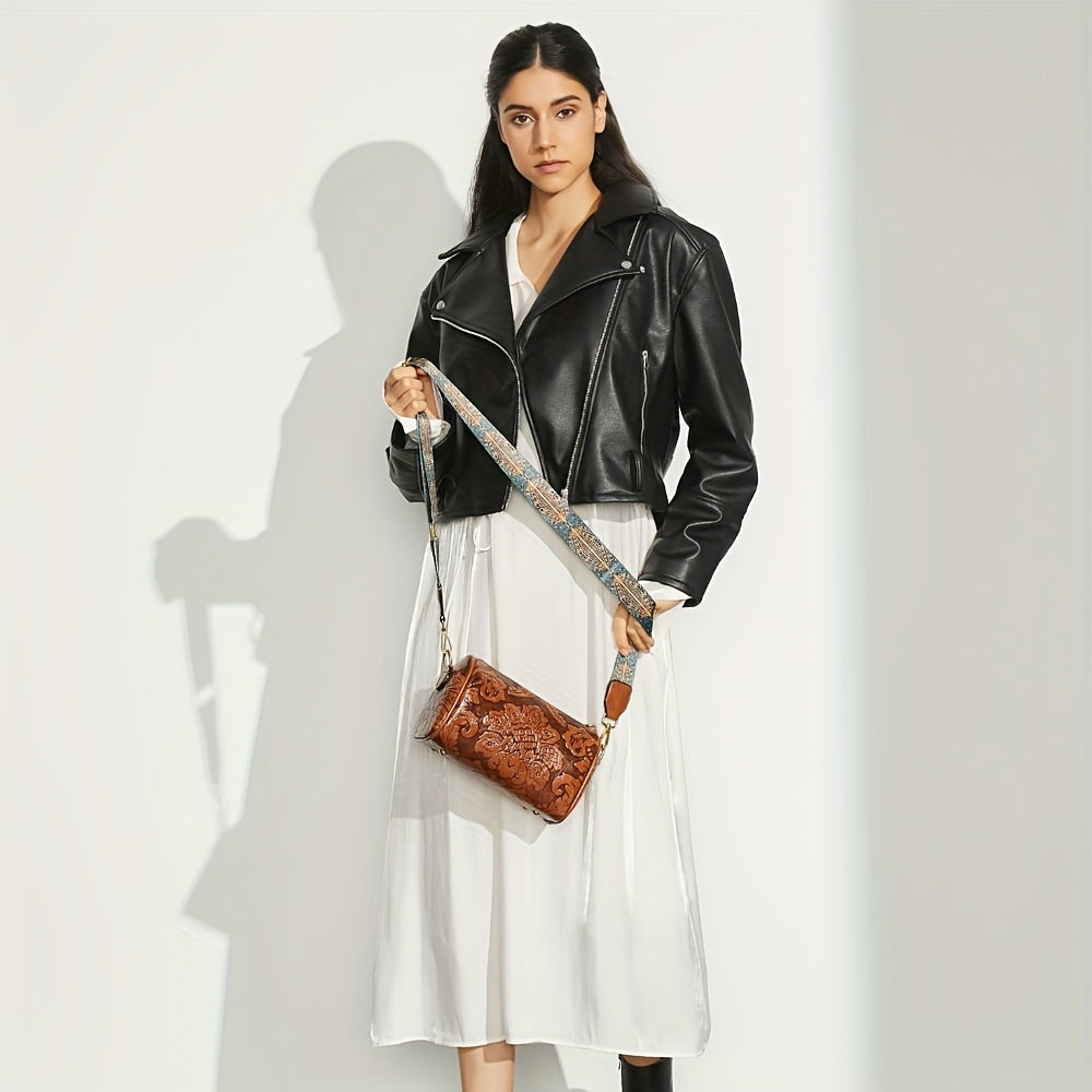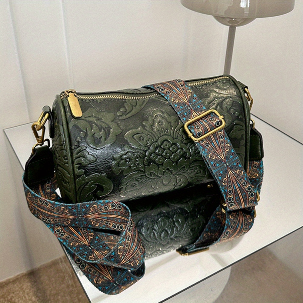 Boho-Chic Floral Embossed Crossbody & Shoulder Bag for Women | Elegant Retro Charm with Secure Zipper Closure, Perfect for Every Occasion
