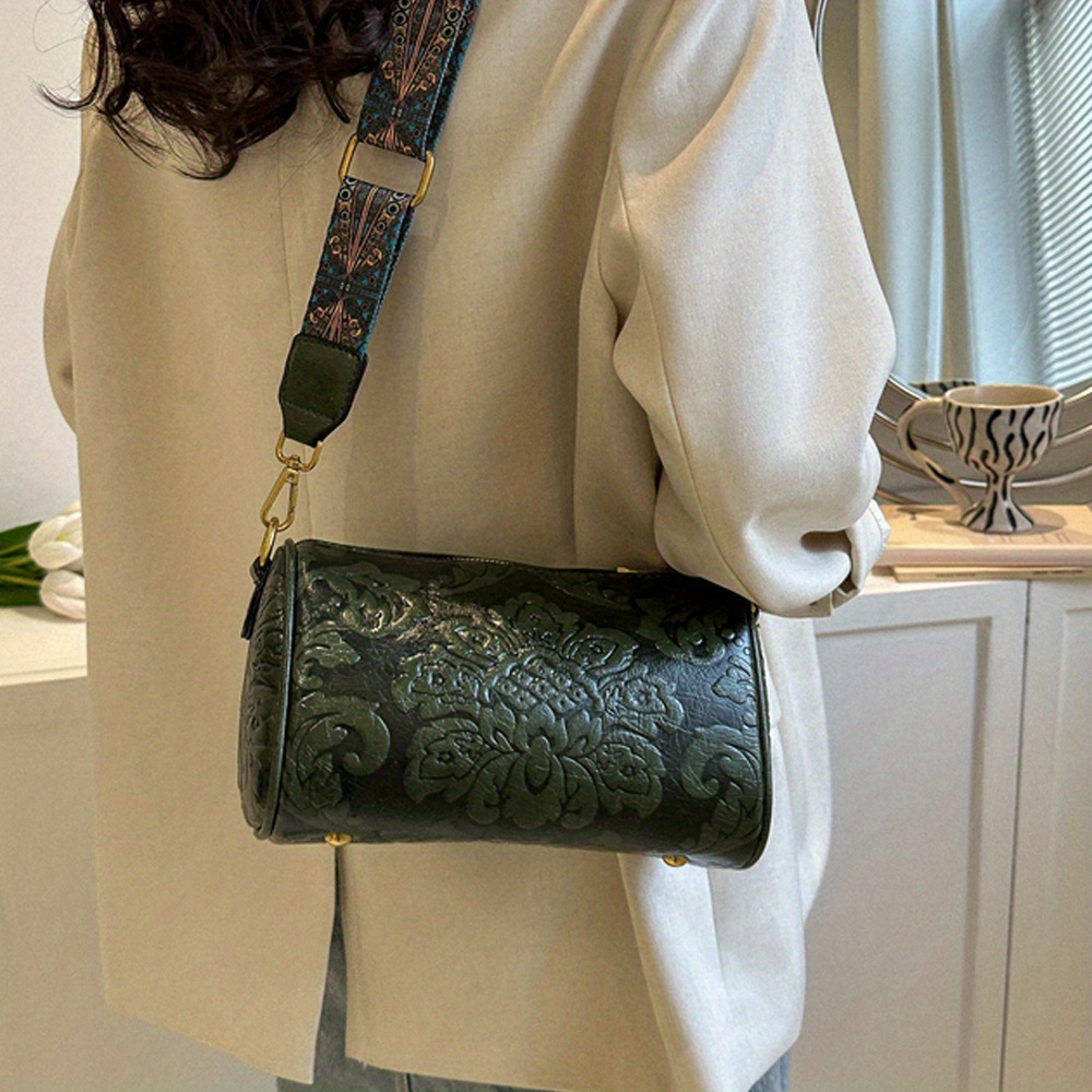 · Classic Design: Vintage flower embossed barrel bag with a classic retro shoulder strap design.