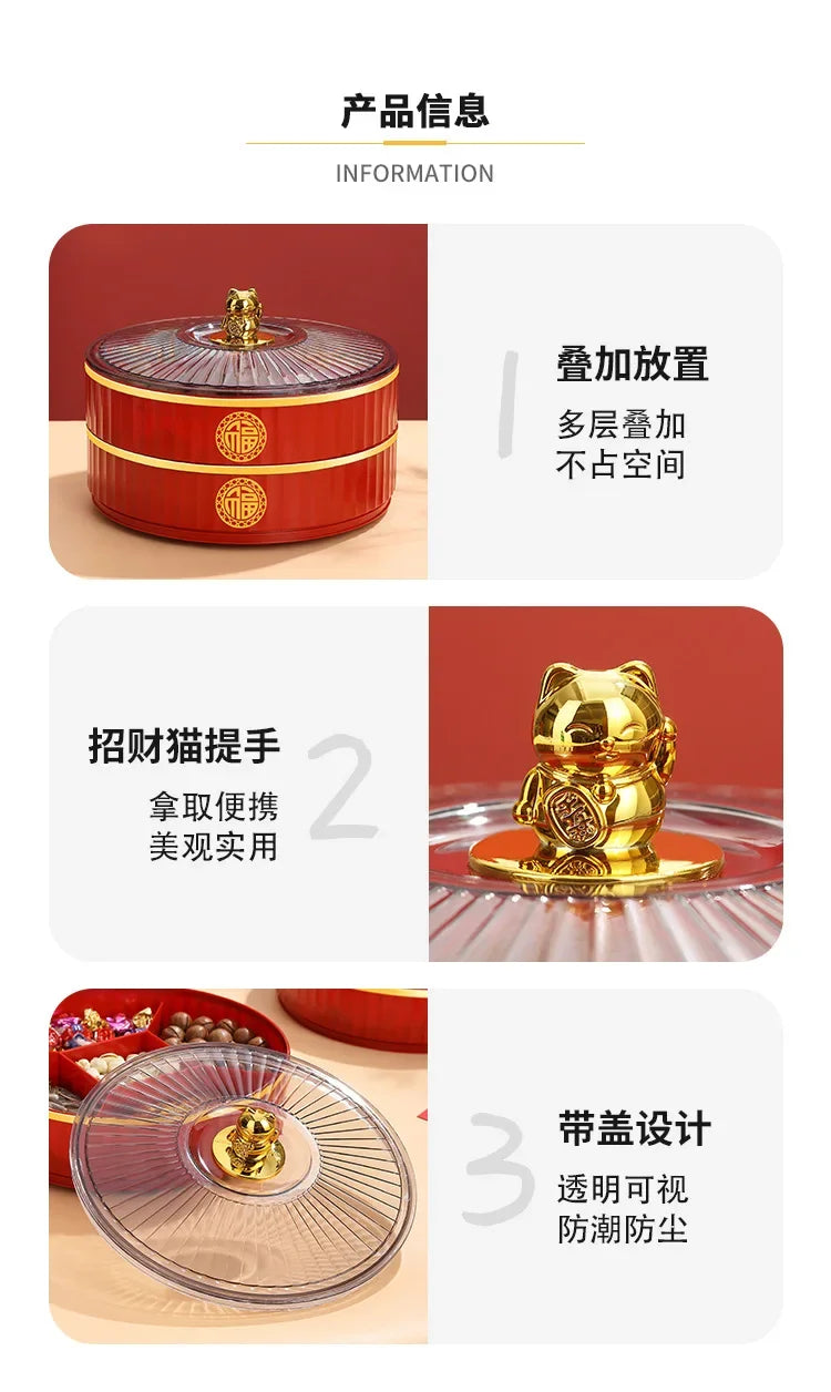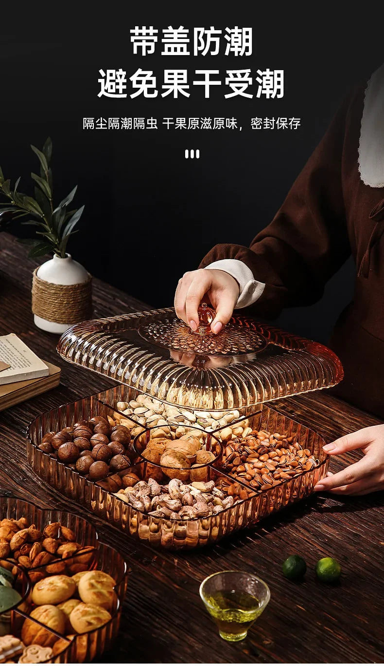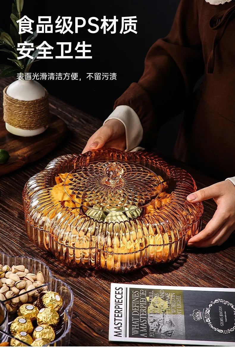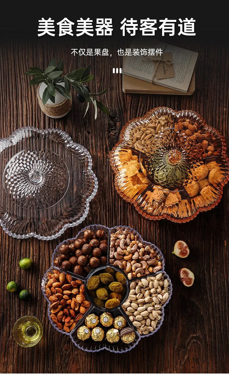 Plateau de stockage des aliments Plateau de noix Bonbons Snacks Serveur Plat Divisé Fruits Secs Snack Assiette Apéritif Plateau de service Pour Fête/Bol de fruits Bol de fruits secs Boîte de fruits multicouche créative de luxe Contenant une boîte de casse-croûte de noix domestique