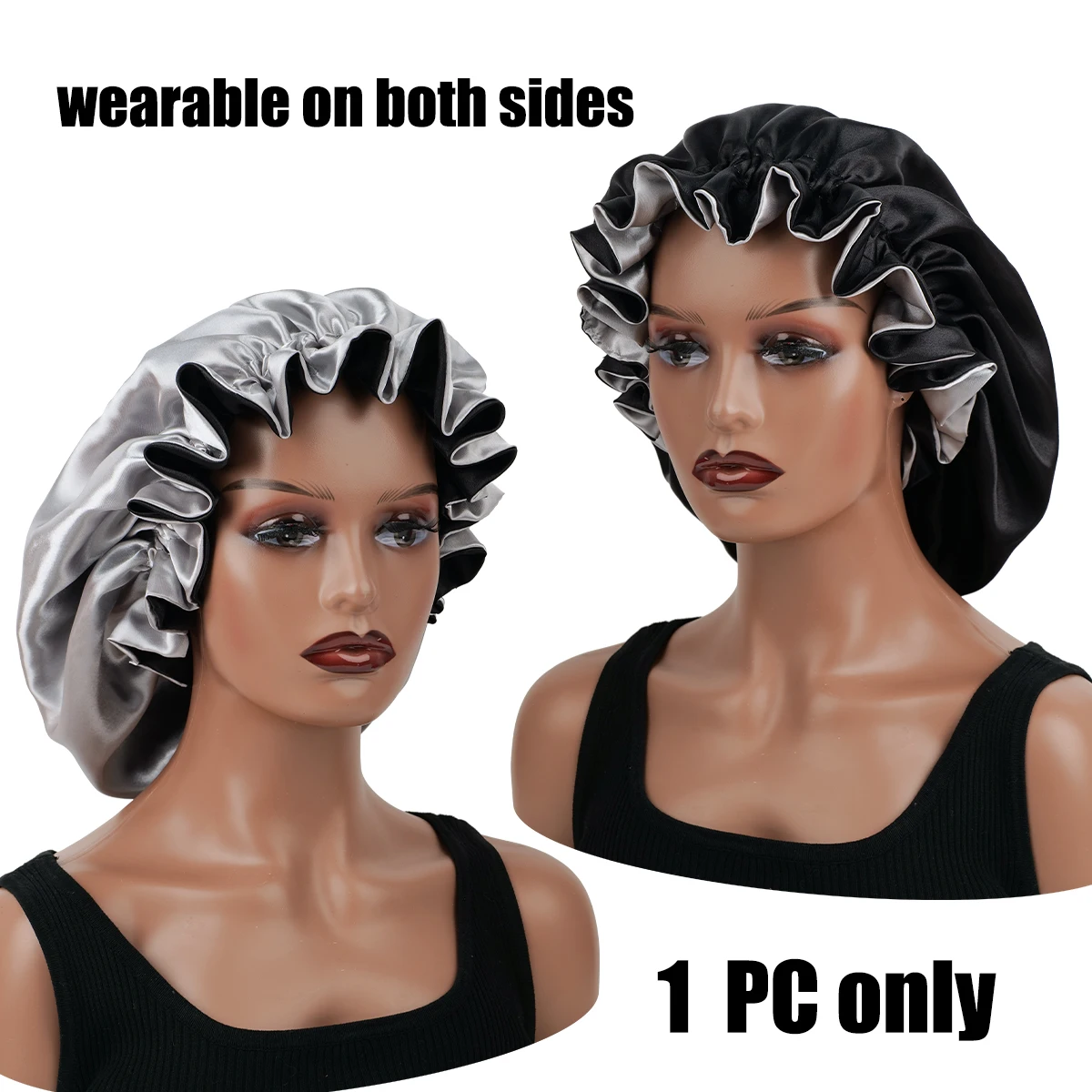 Bonnet de cheveux minimaliste Double couche en Satin, 1 pièce, bonnets de sommeil pouvant être portées des deux côtés, casquette polyvalente pour hommes/femmes
