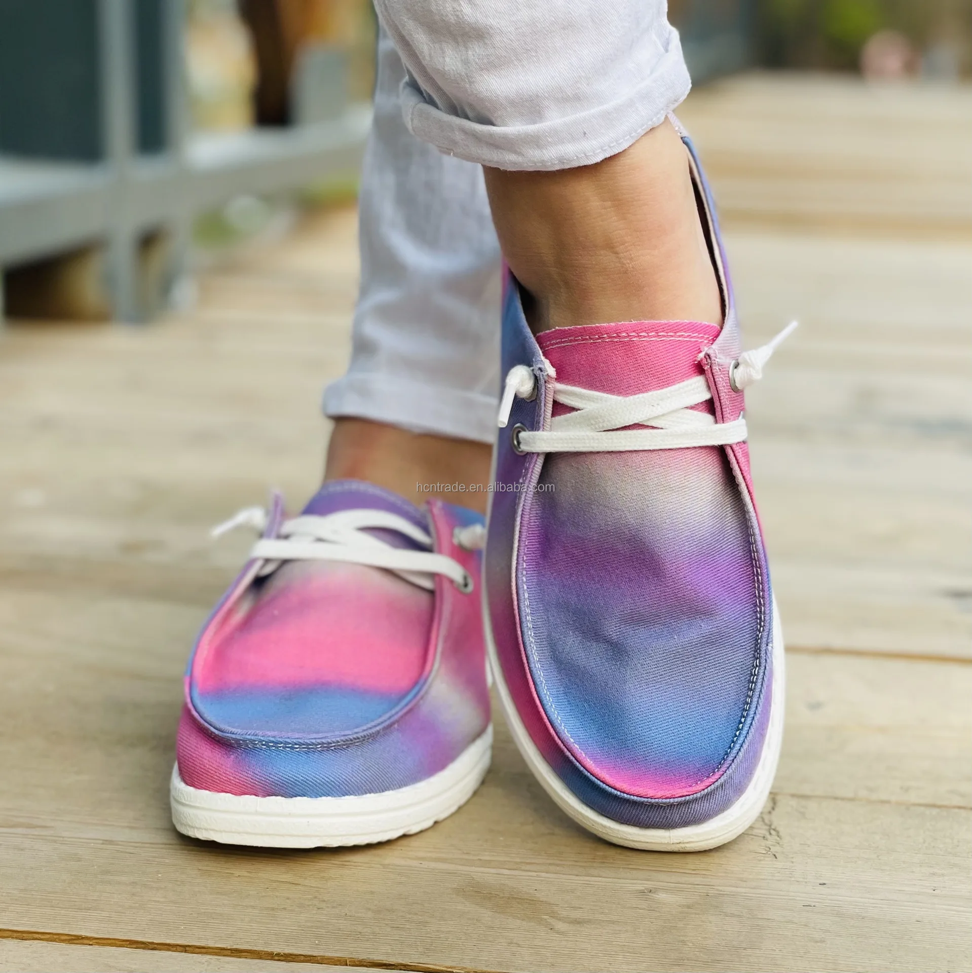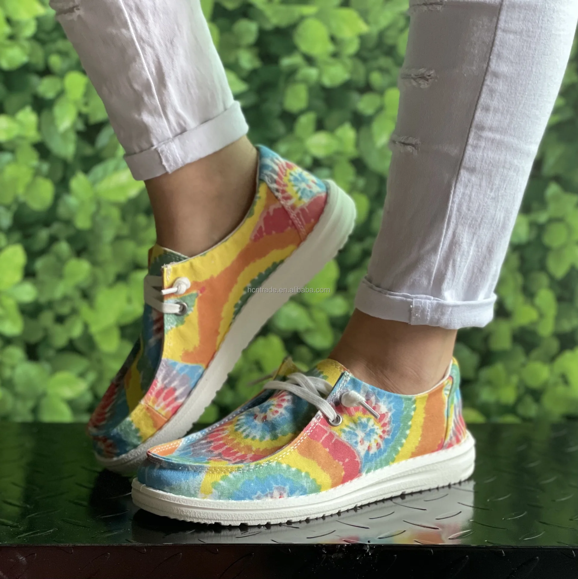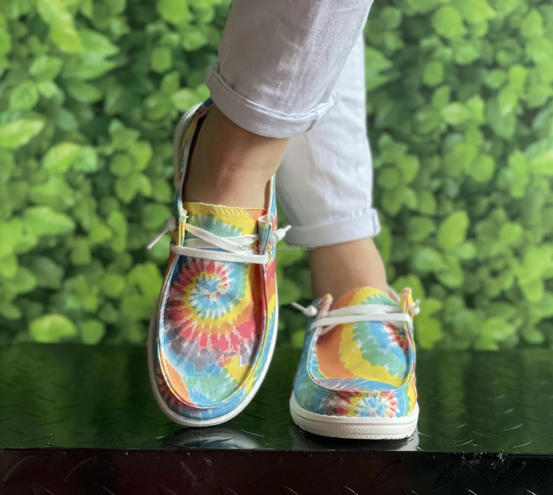 BUSY GIRL DW4051 Wholesale Canvas Lace up Boat Sneaker Women 2023 Fashion Tie Dye Flat Shoes Women Boat Shoes