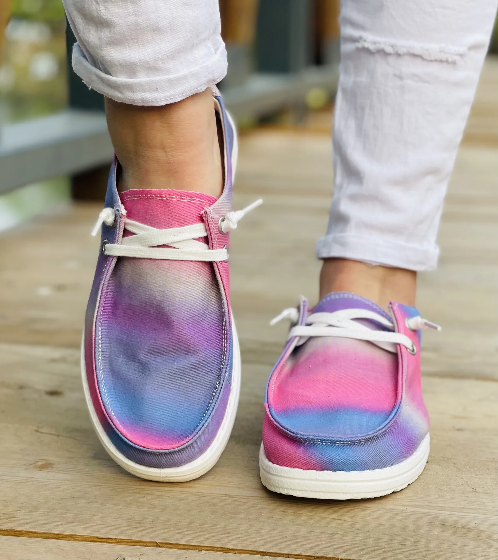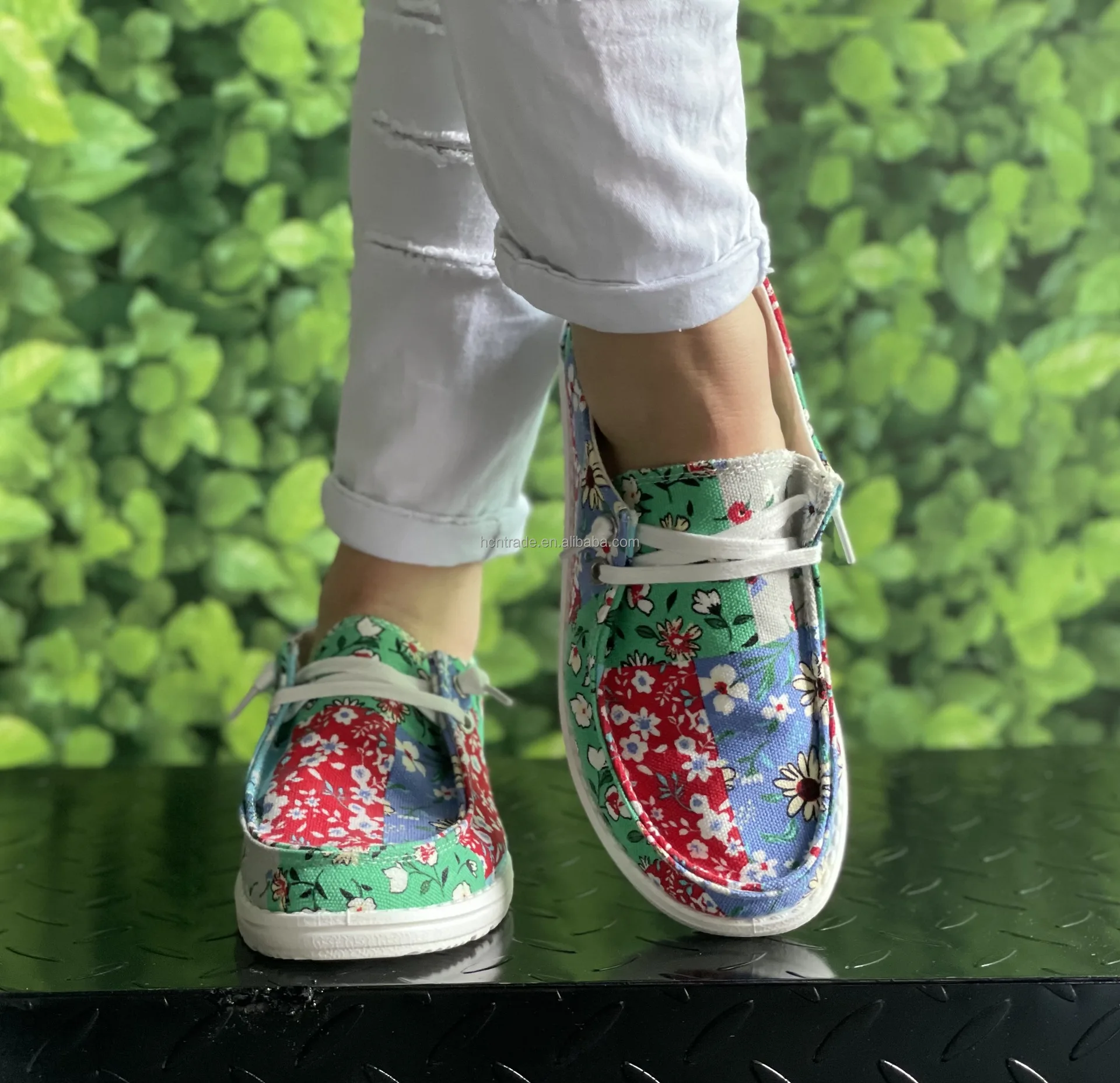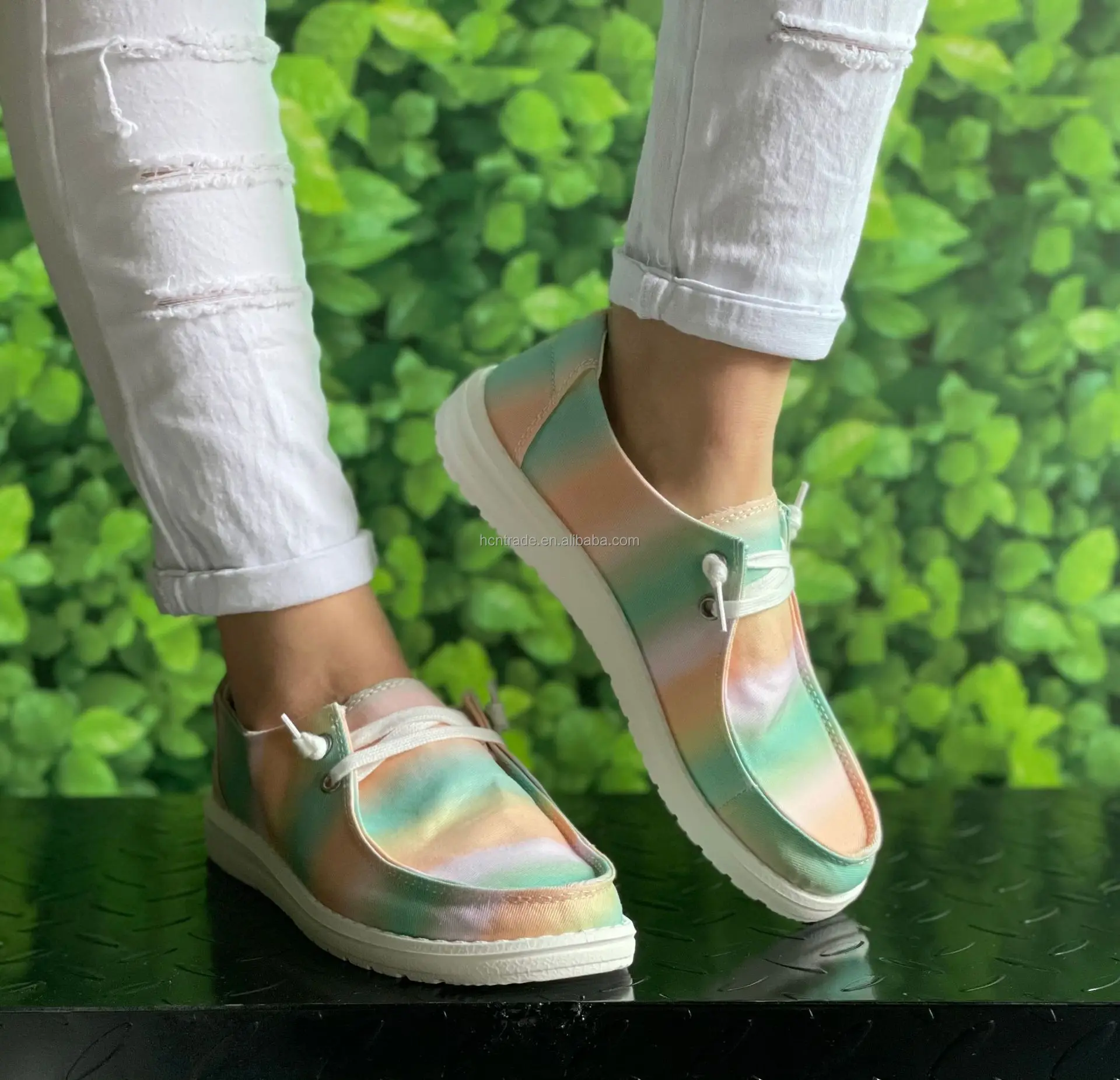BUSY GIRL DW4051 Wholesale Canvas Lace up Boat Sneaker Women 2023 Fashion Tie Dye Flat Shoes Women Boat Shoes