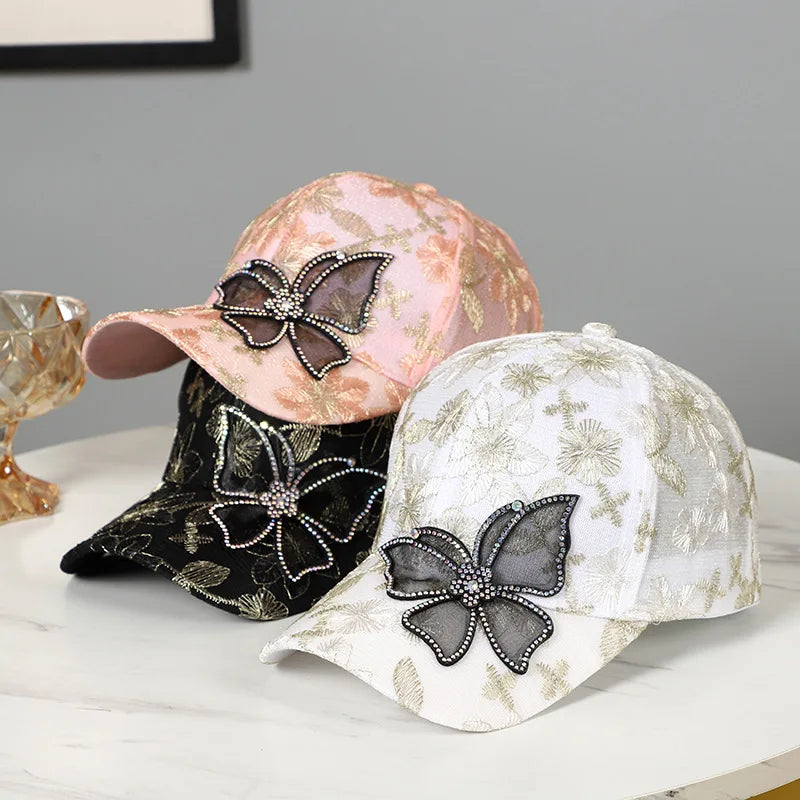 Casquette de Baseball papillon strass, casquette à rabat pour femme et homme, visière, chapeau de soleil, protection solaire, casquette de Sport, mode Unique, chapeau de plage fantaisie