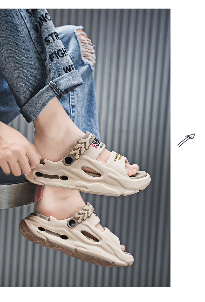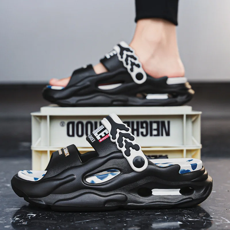 Pantoufles à glissière pour hommes, chaussures de plage EVA à plateforme de 5CM, pantoufles confortables en plein air nuage pour hommes, Pantuflas d'été