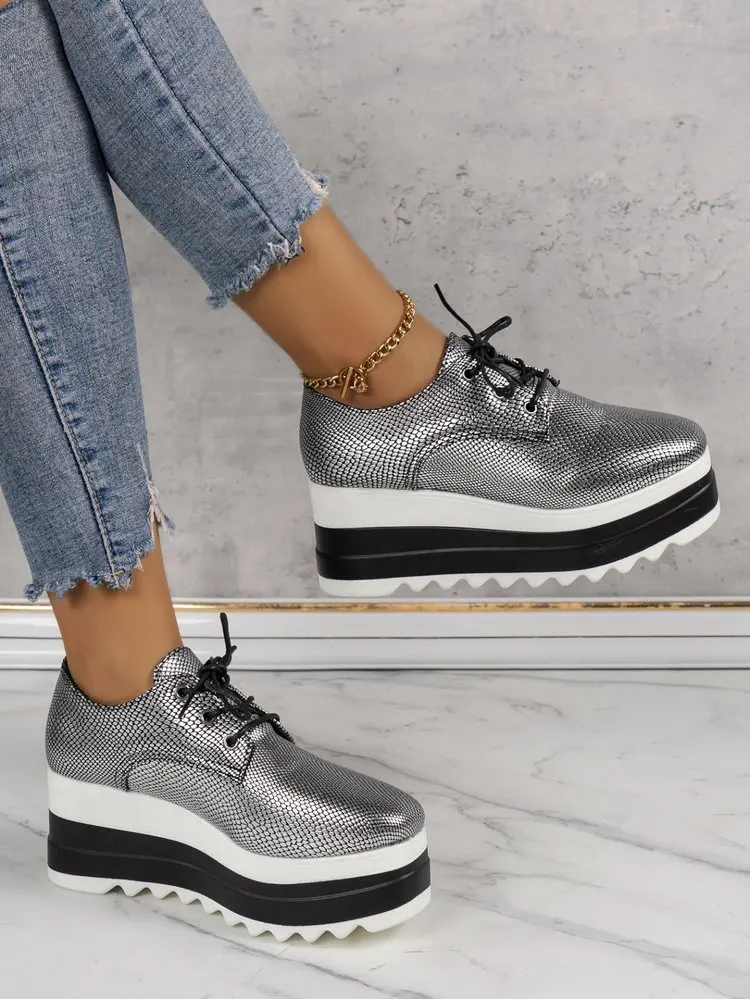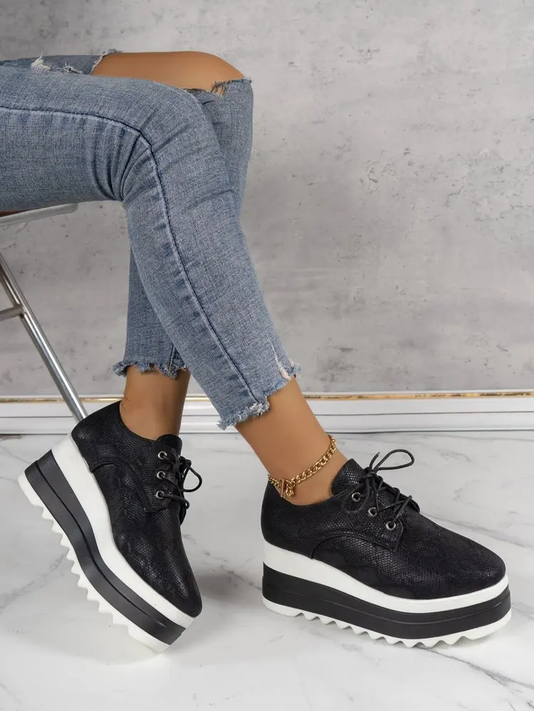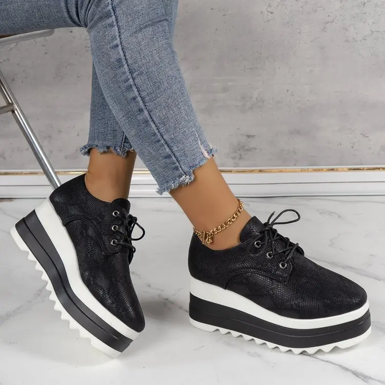 Chaussures à plateforme à talons compensés pour femmes, chaussures d'extérieur décontractées à lacets, baskets confortables à talons hauts, semelle optique de rencontre basse