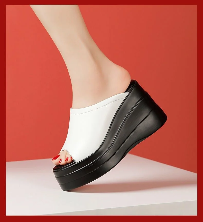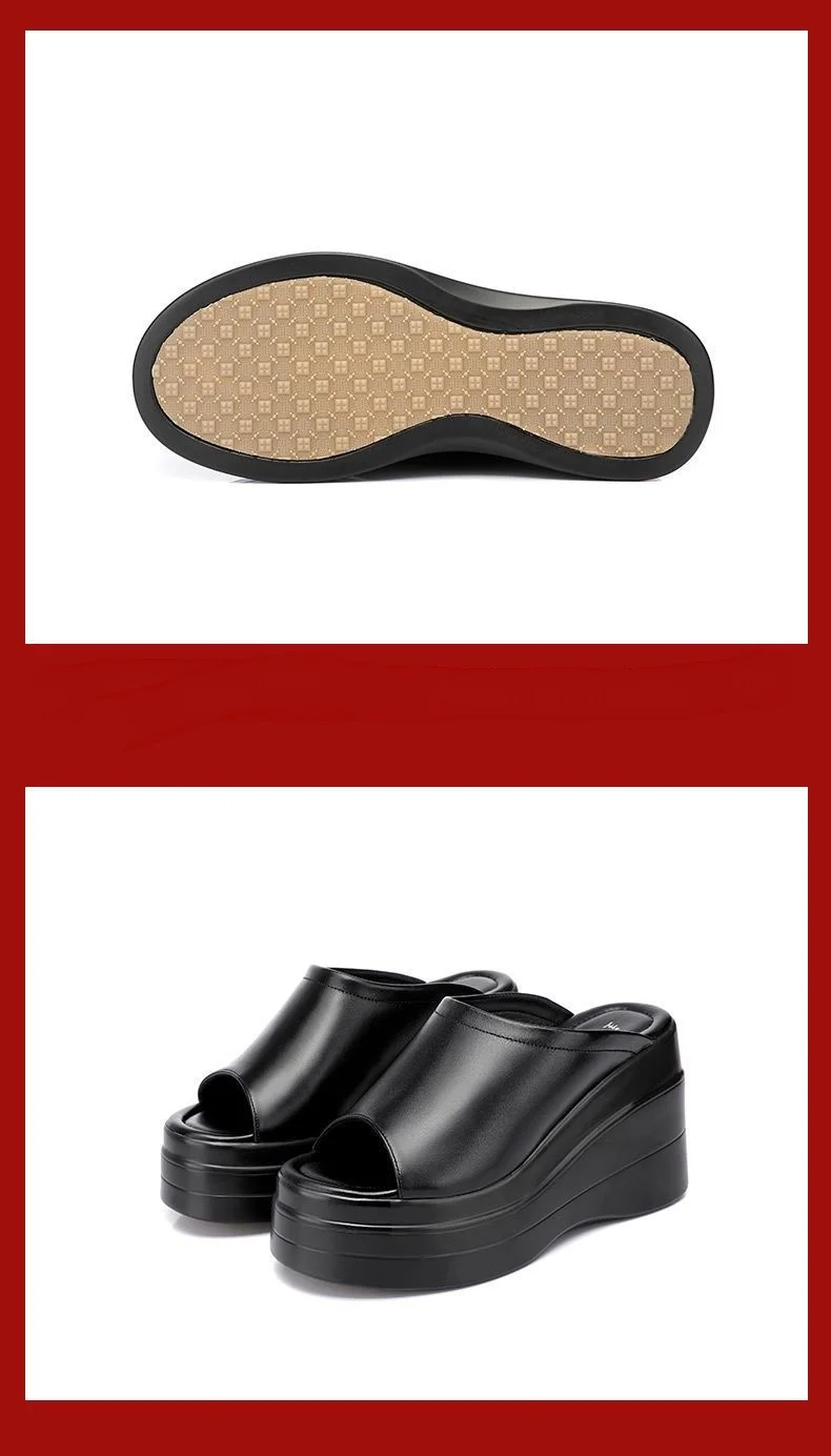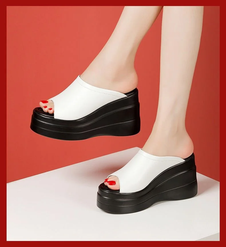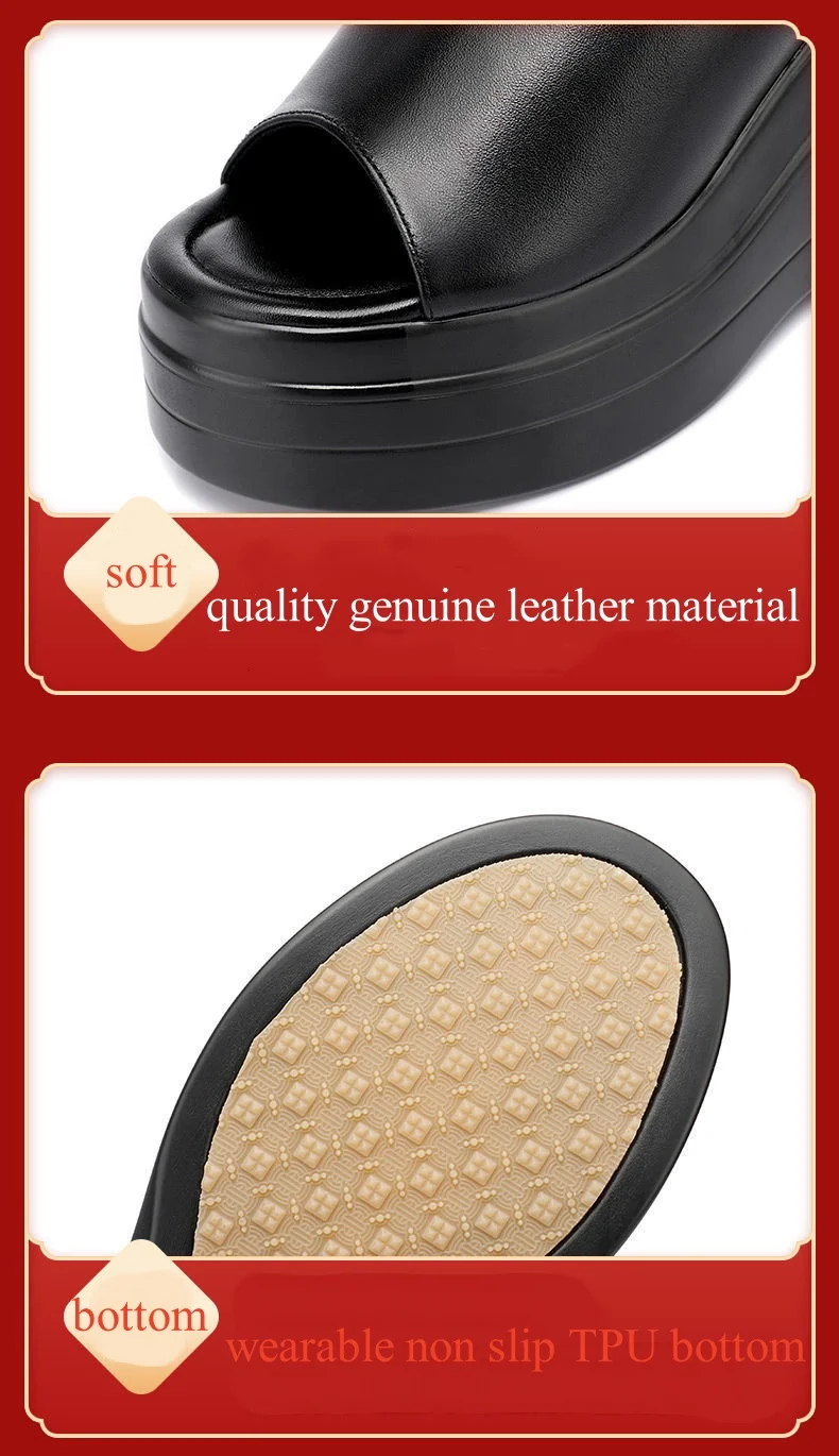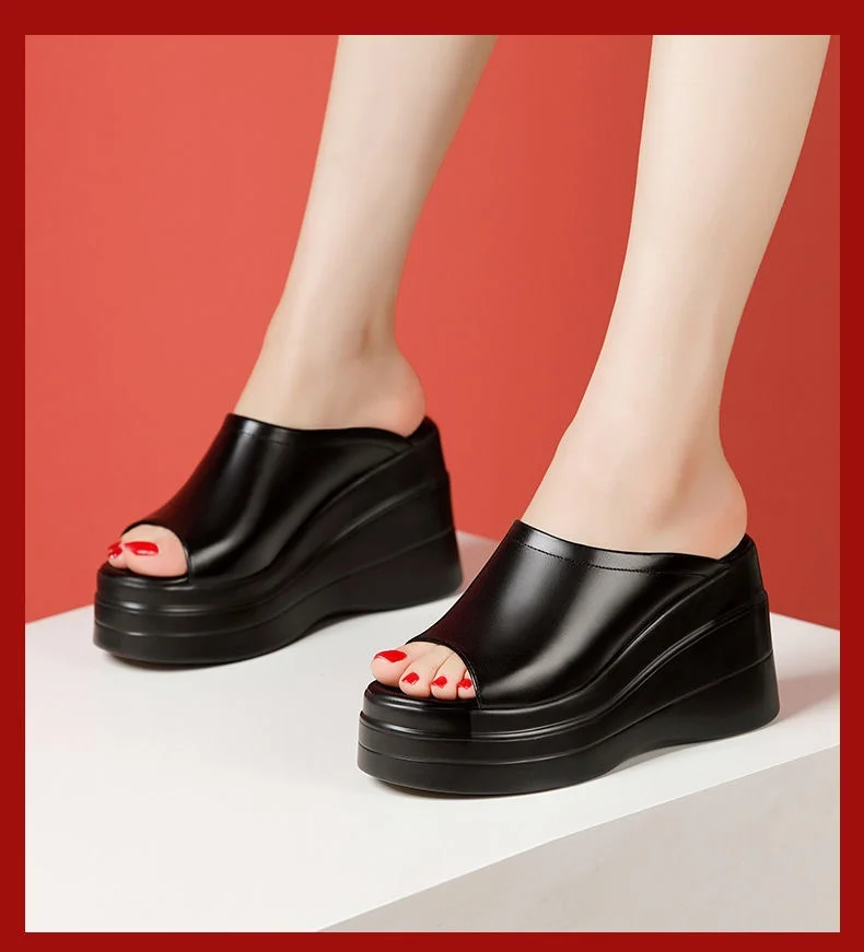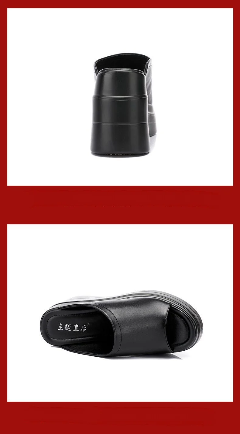 Chaussures confortables à plateforme épaisse de 9.5cm, petite taille 32-43, pantoufles en cuir véritable, talons hauts 2025, diapositives à semelles compensées, modèle de bureau