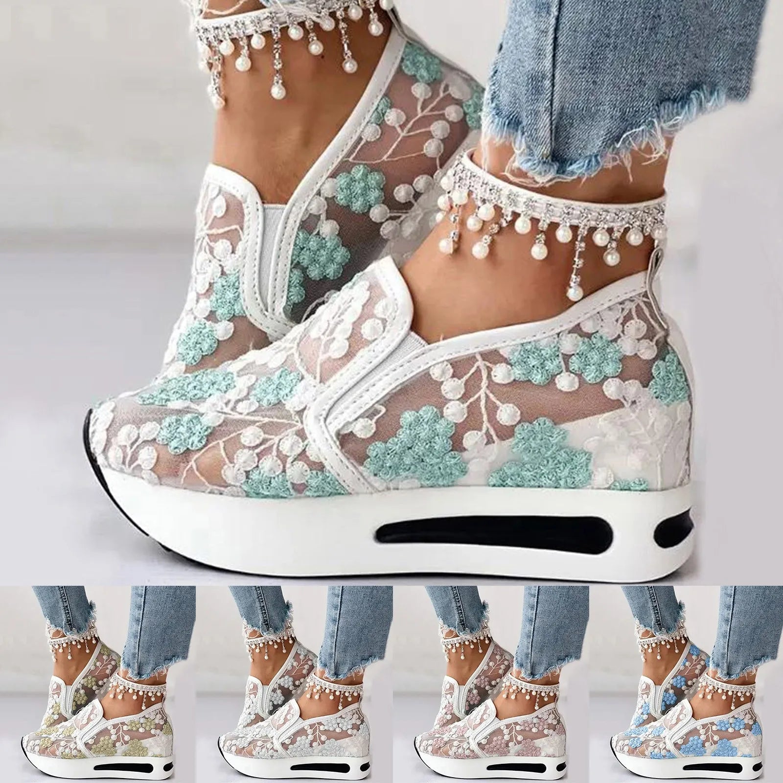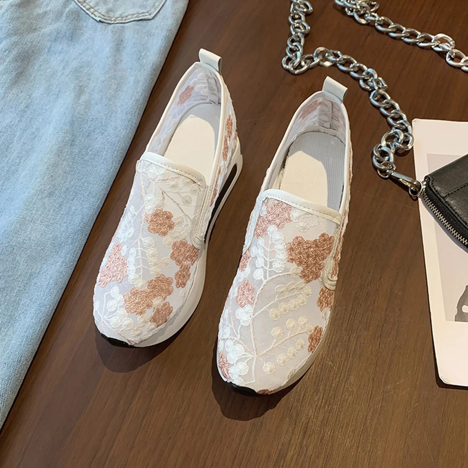 Chaussures pour femmes Chaussures décontractées confortables à semelle souple Chaussures décontractées en maille dentelle respirante pour l'extérieur à la mode
