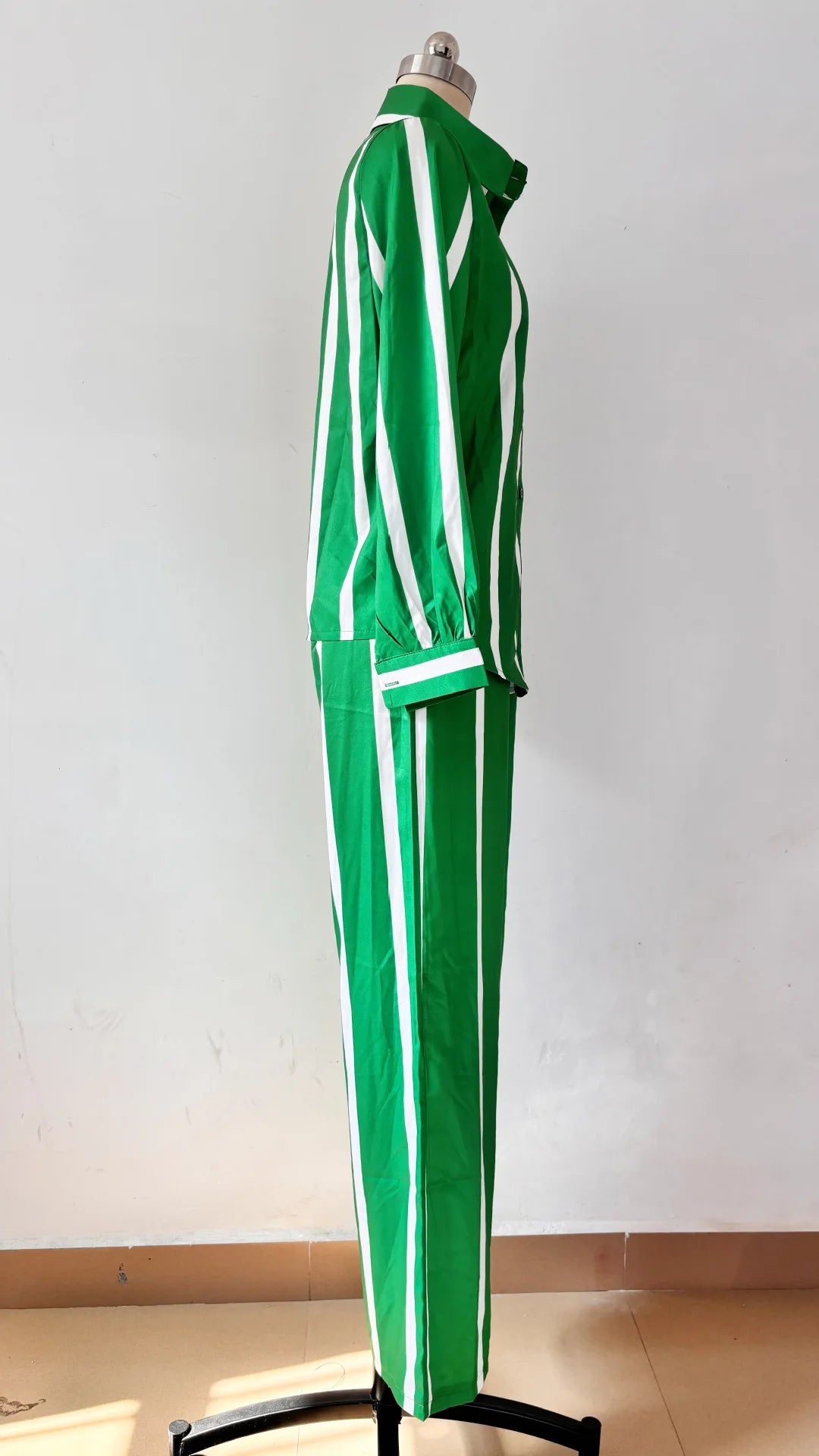 Chemise à manches longues rayée imprimée pour femme, revers élégant, taille élastique, jambe large, pantalon, ensemble 2 pièces, mode automne, nouveau, 2024