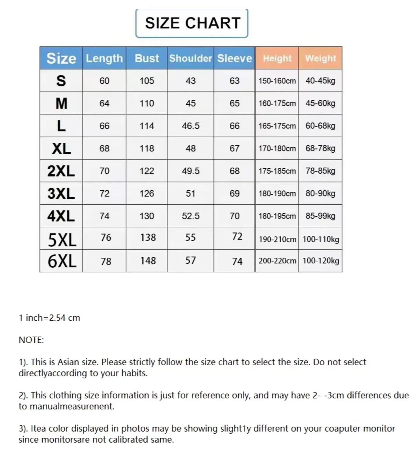 Size: S,M,L,XL,2XL,3XL,4XL,5XL,6XL