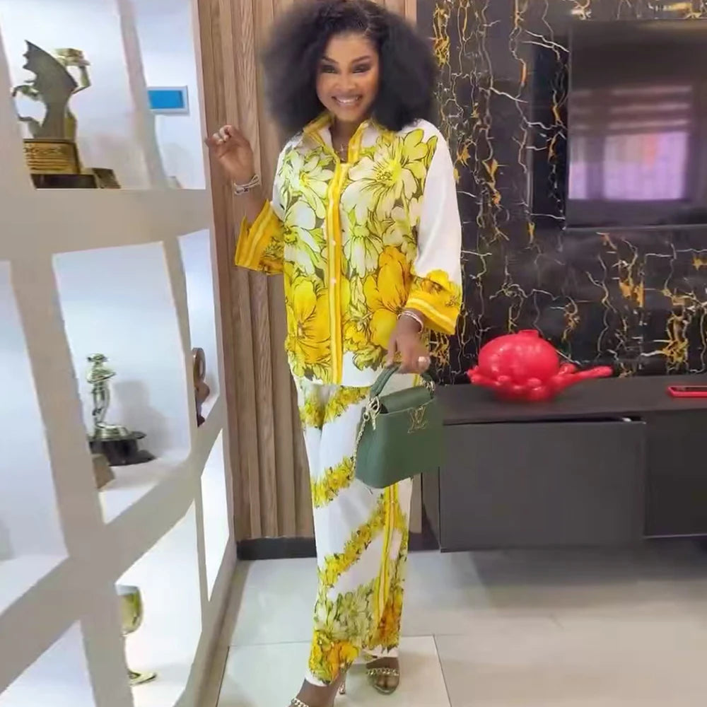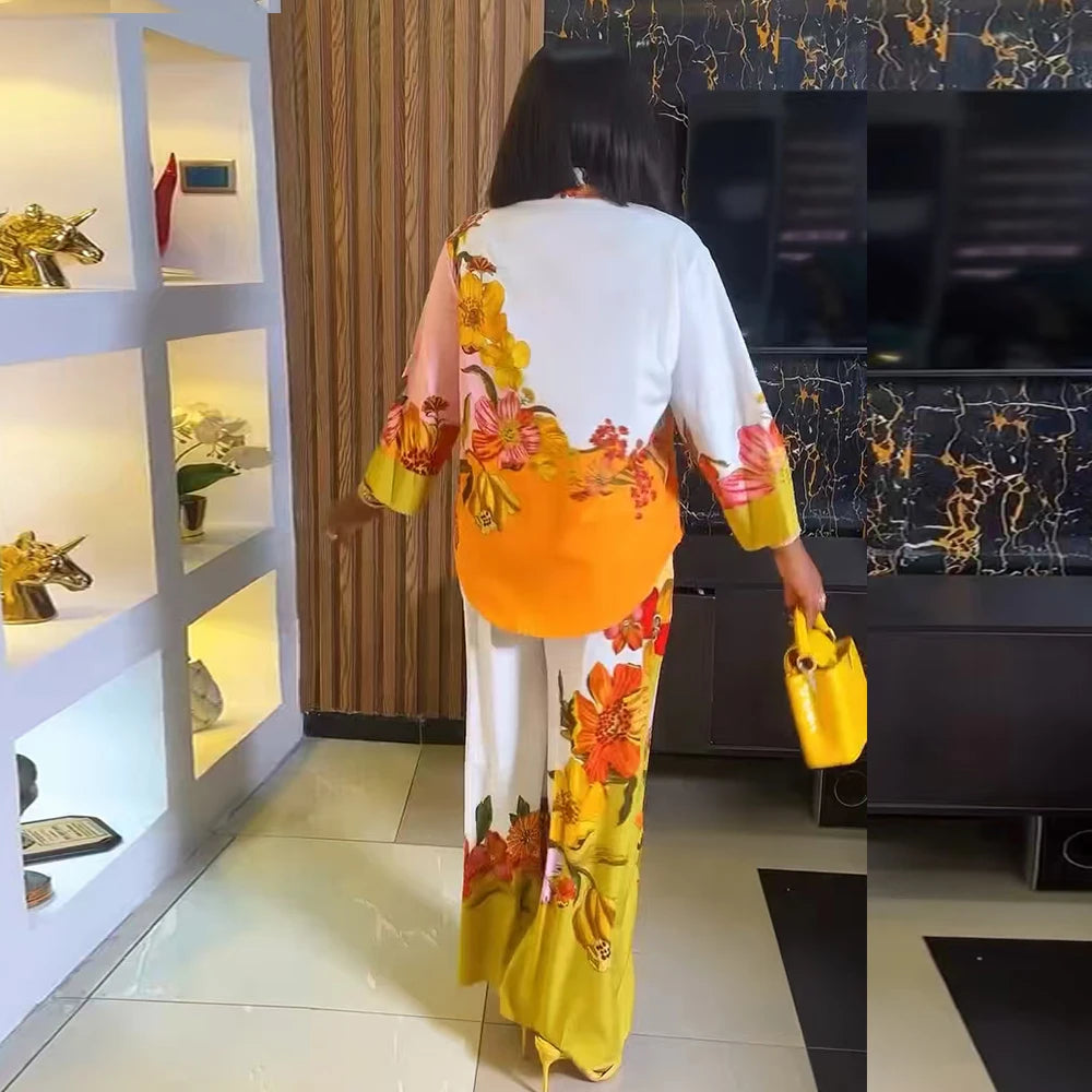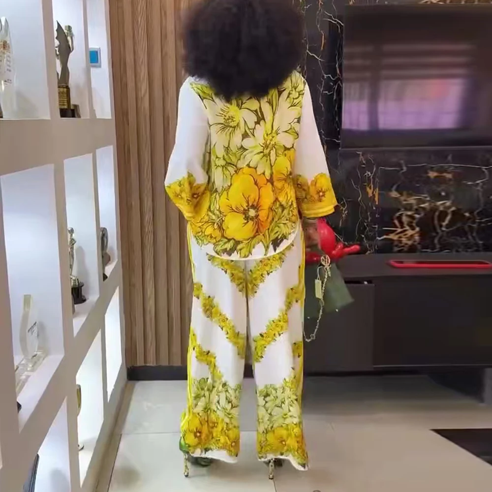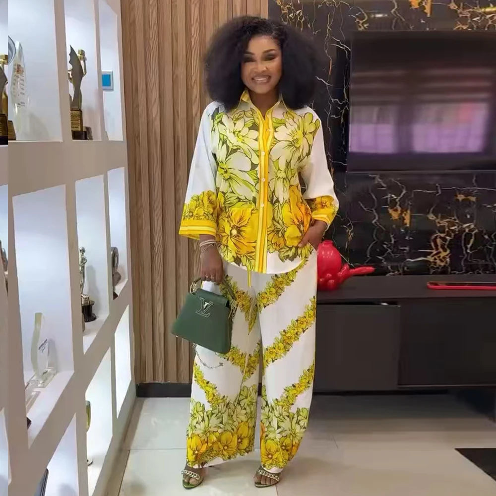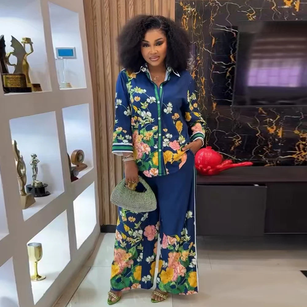 Chemise Vintage décontractée à imprimé Floral pour femmes, col rabattu, pantalon ample, chemisier, ensemble deux pièces, tenues de vacances printemps et été