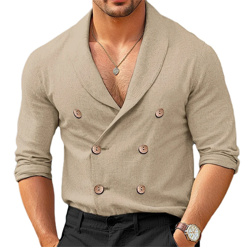 Chemises à col en V pour hommes, manches longues, double boutonnage, coupe couvertes, solide, document décontracté, mode confortable, automne