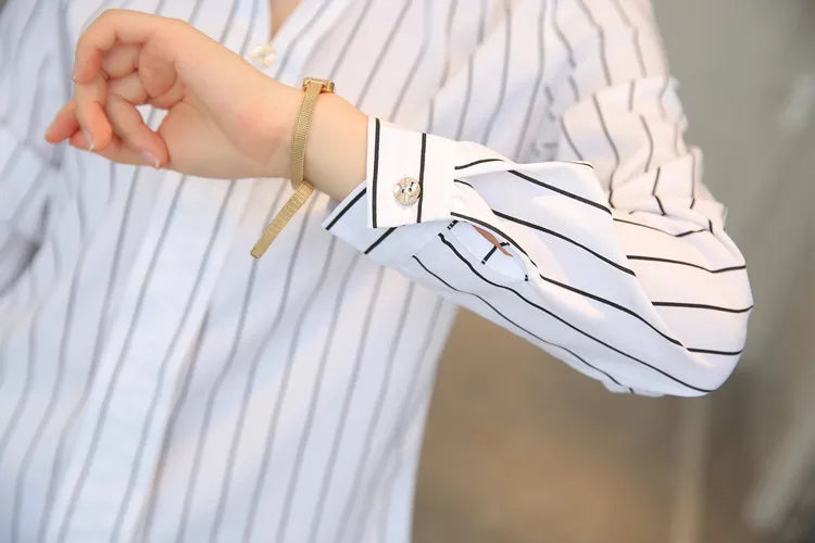 Chemisier à rayures pour femmes, col montant, chemise à manches longues et chemisiers imprimés pour dames, hauts basiques pour femmes