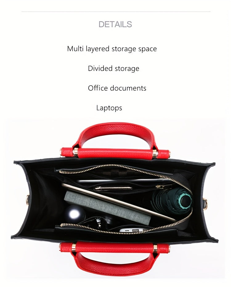 Classic Letter Embossed Tote Bag, Colorblock Shoulder Bag, All-Match Satchel Bag For Work