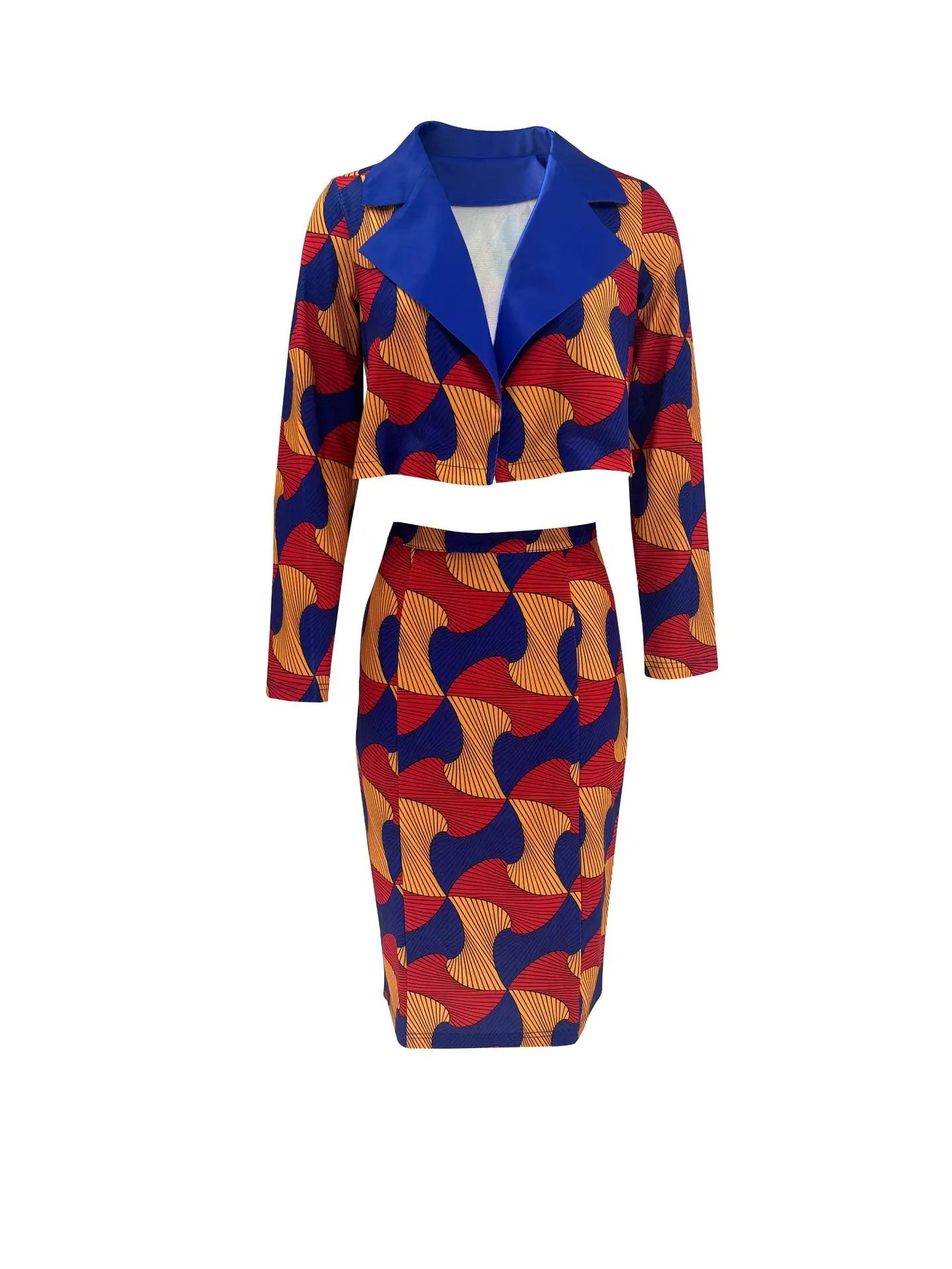 Costume deux pièces pour femmes Dashiki, manches longues, ensemble haut nombril exposé, jupe Midi imprimée, ensemble décontracté pour femmes