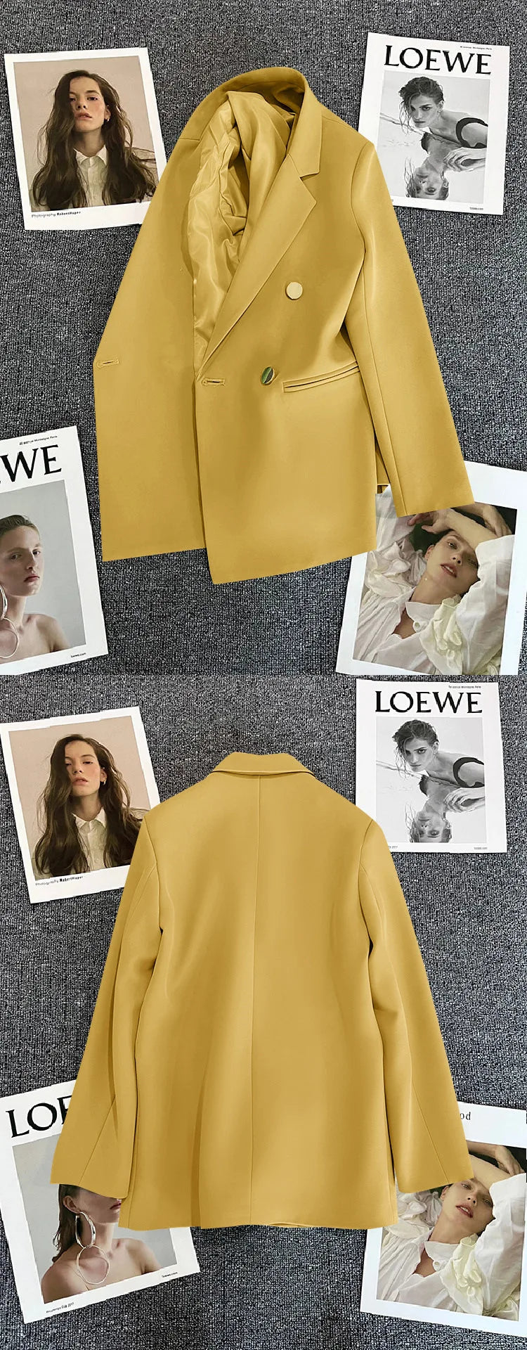 Couleur bonbon OL Blazer printemps automne cranté à manches longues Double boutonnage bouton en métal mince poche Blazer manteaux ZXFS-S602
