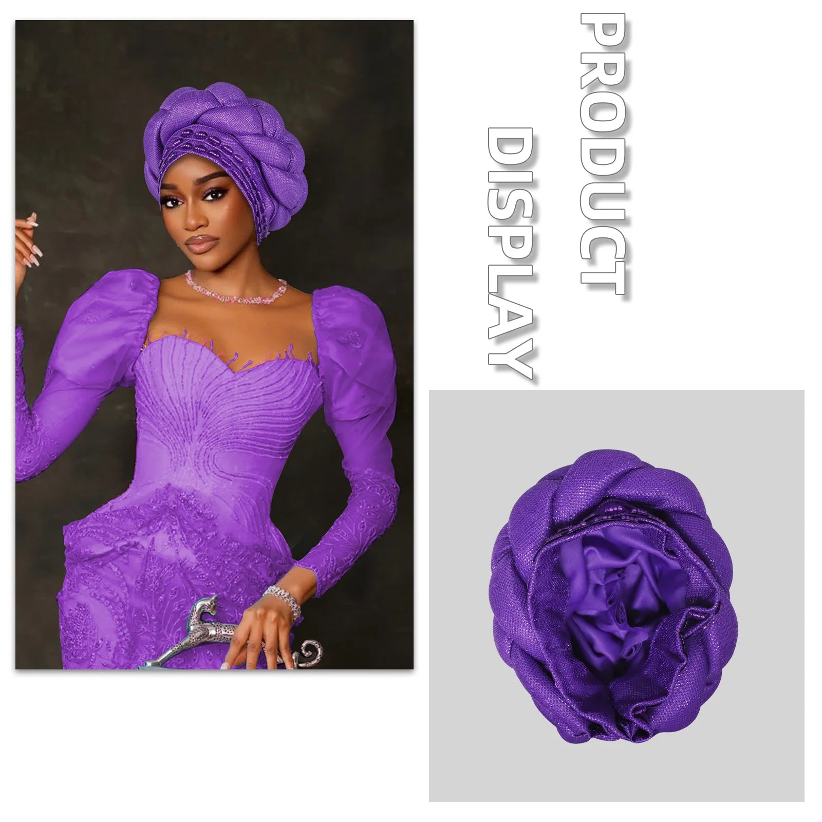 Couvre-chef africain Auto Gele déjà fabriqué, Turban brillant pour femmes, Hijab nigérian tressé, couvre-chef pour fête de mariage