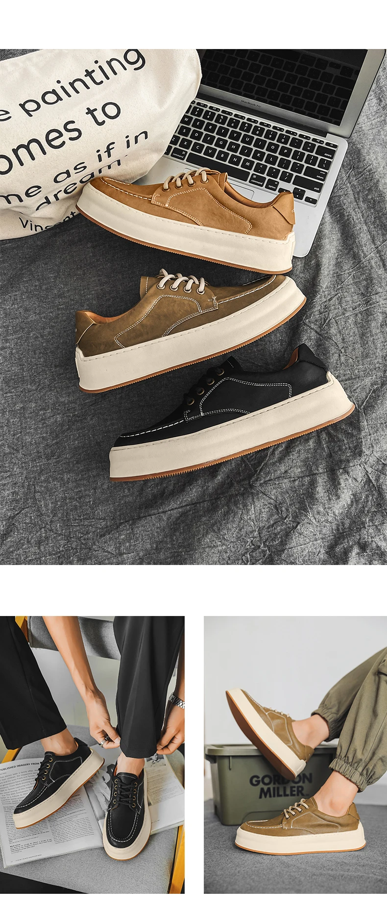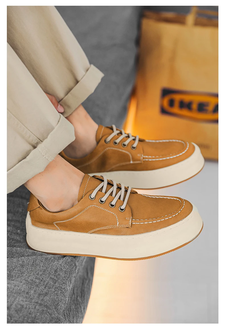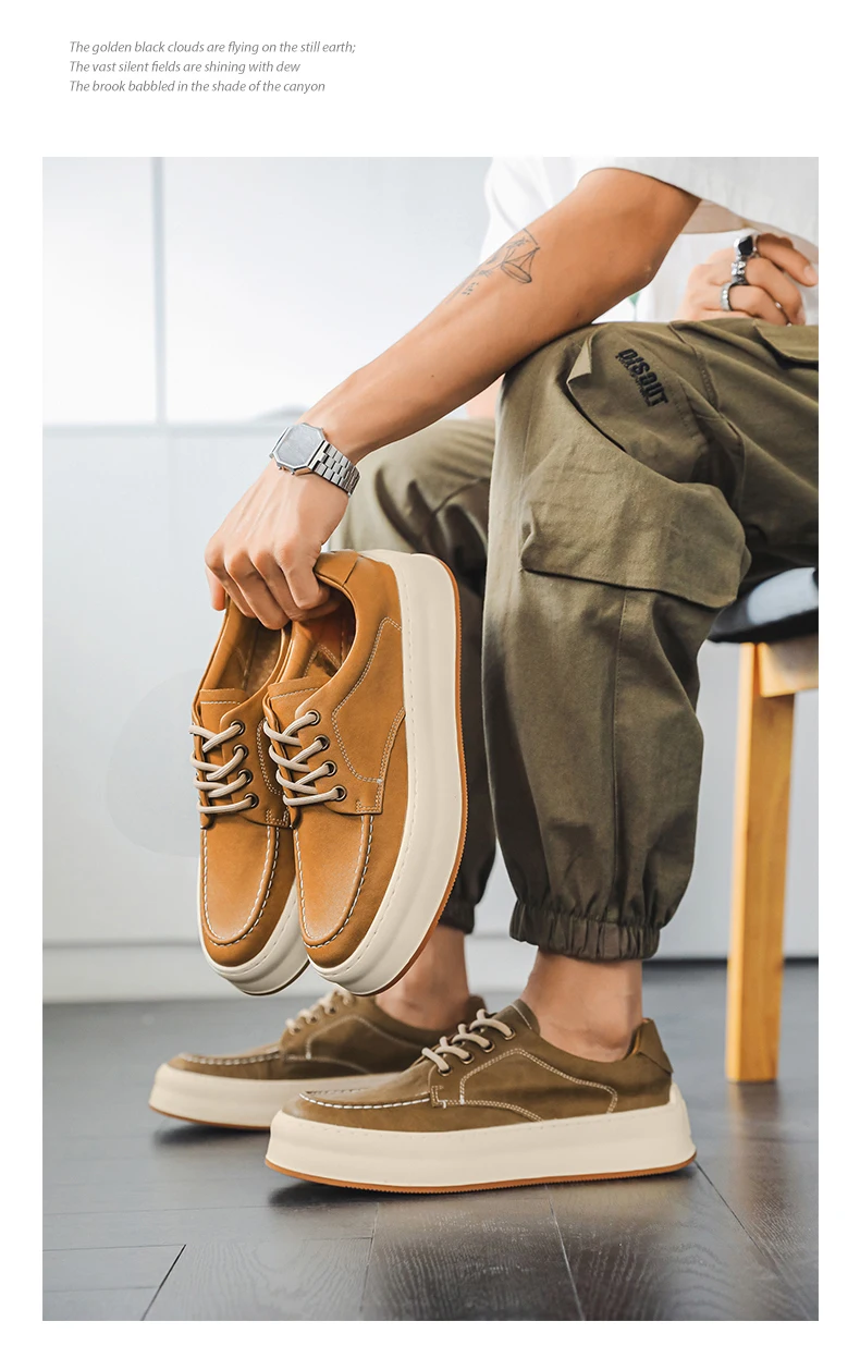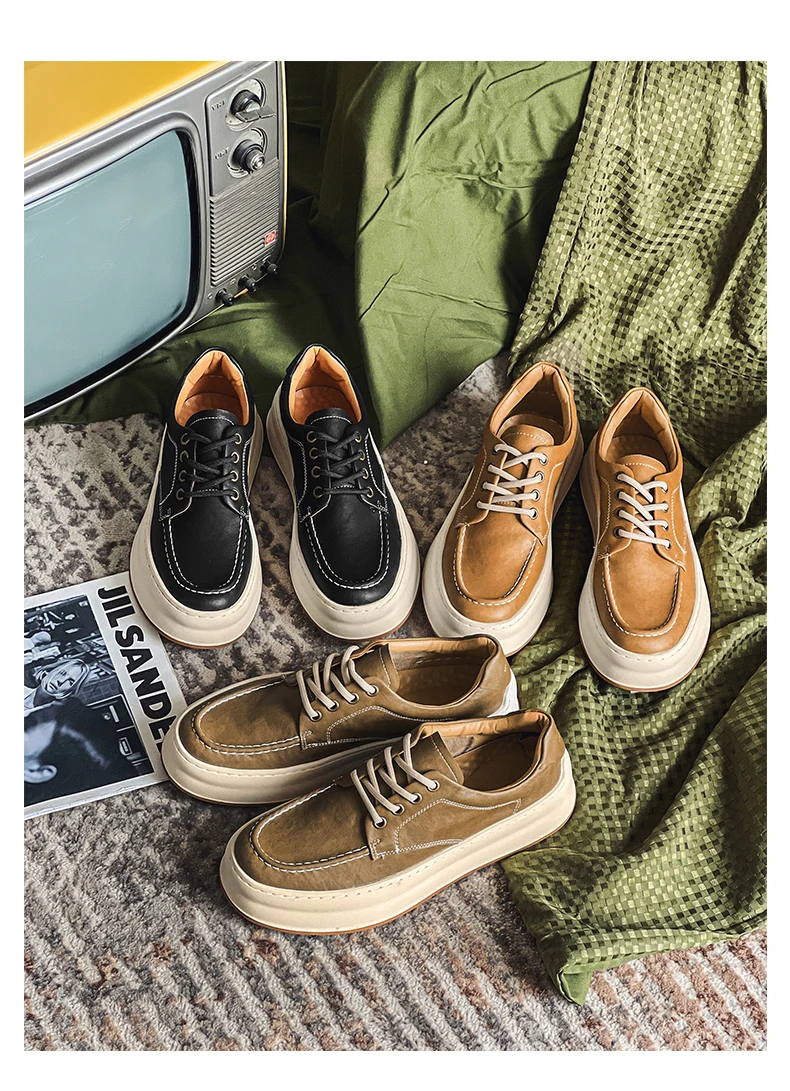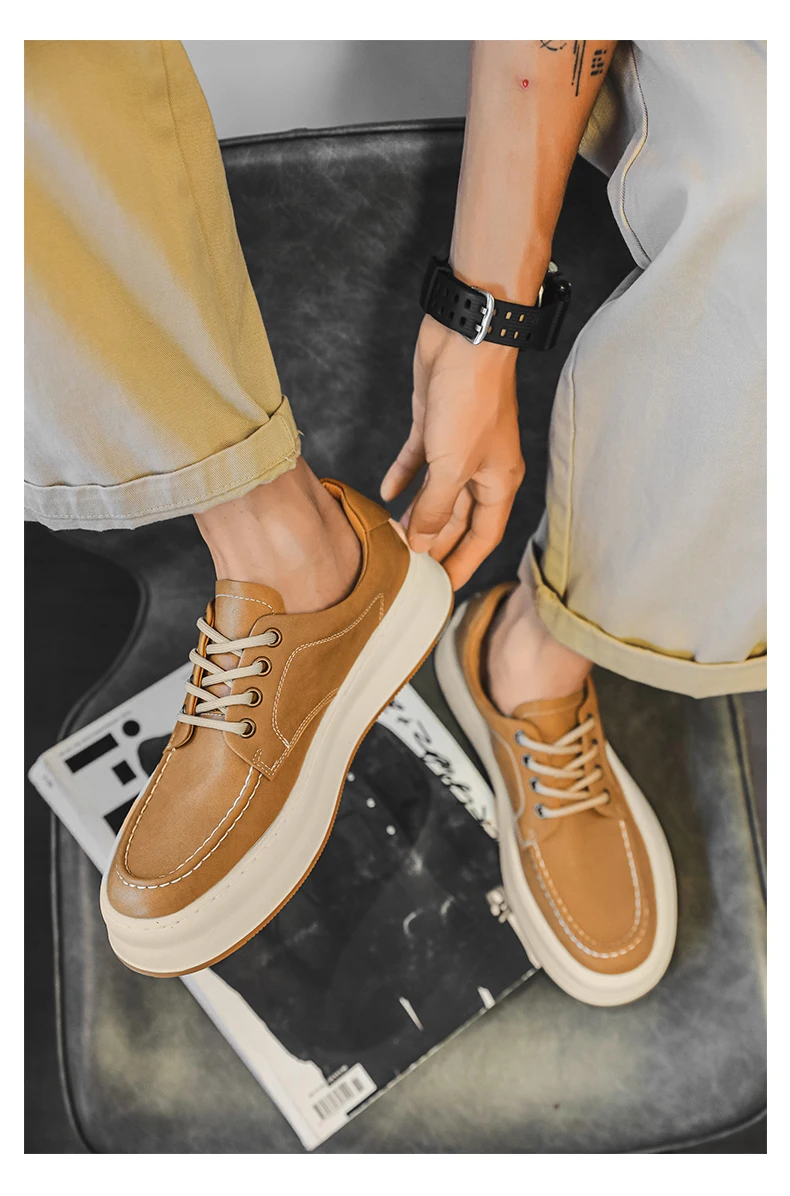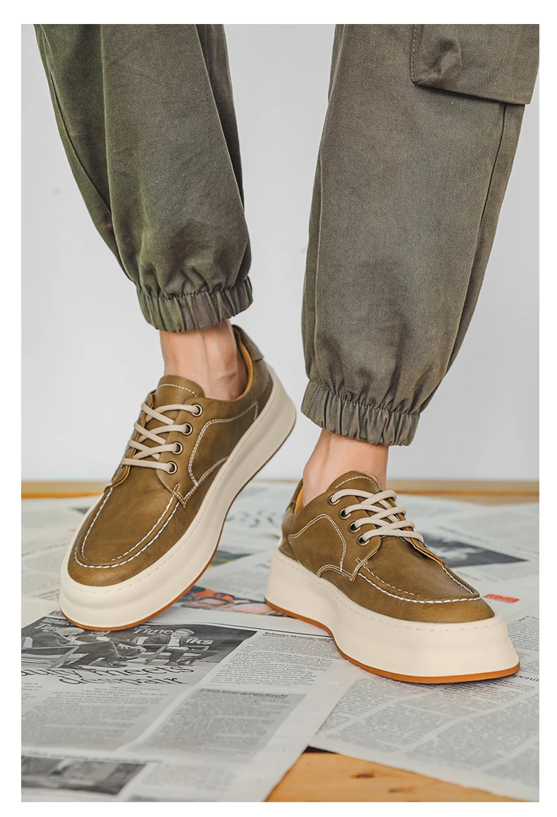 DOYUTIG-Chaussures de planche en cuir véritable pour hommes, baskets à semelle optique coordonnante, chaussures décontractées, rétro vintage, printemps et automne, SGHousex, nouveau