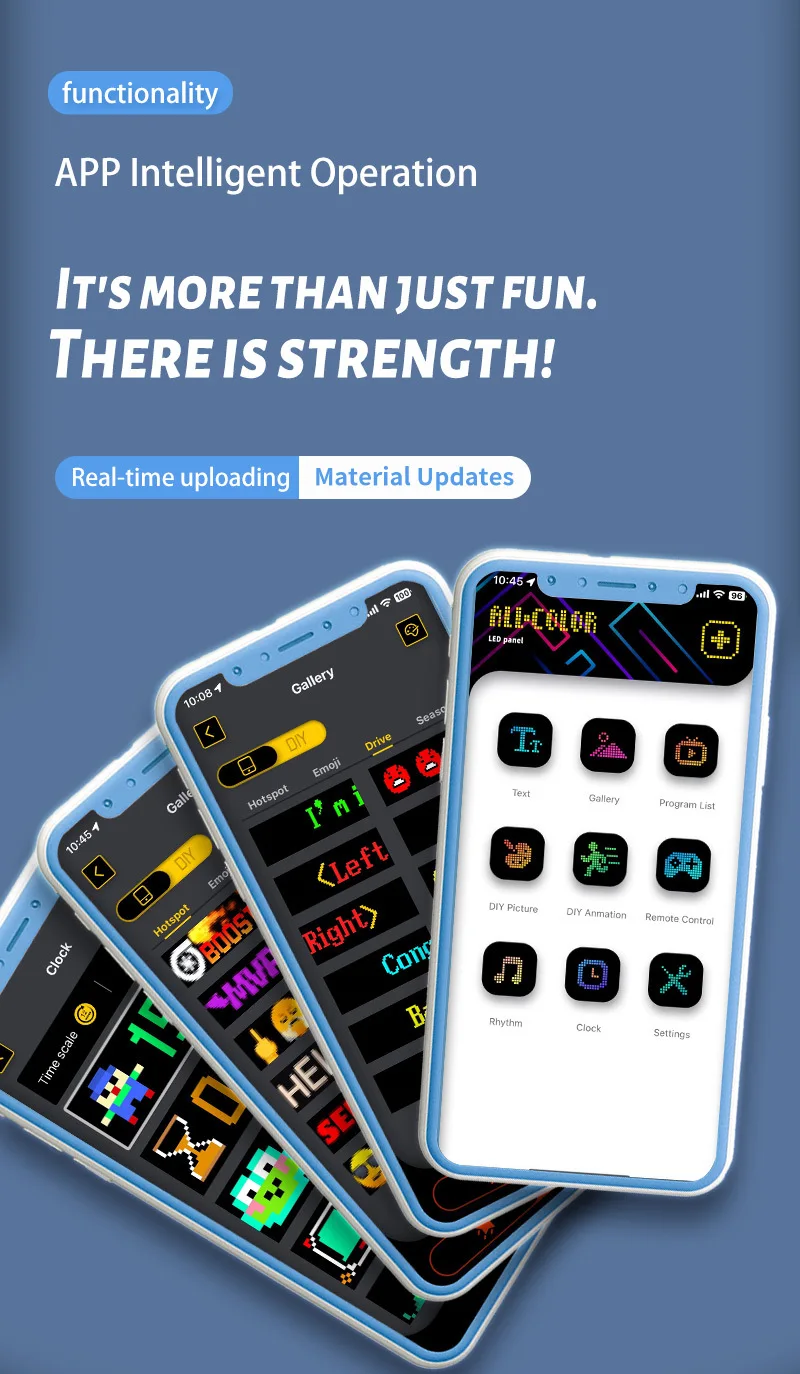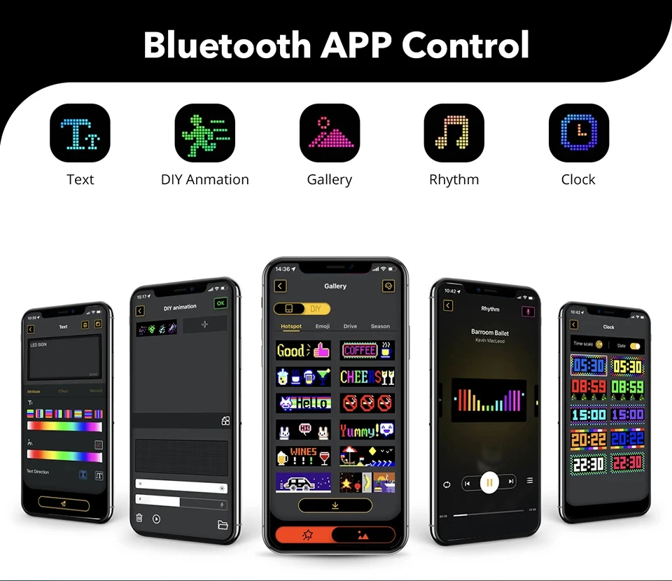 Contenu personnalisable : personnalisez votre panneau LED avec du texte, des motifs et des animations DIY à l'aide des fonctionnalités intégrées de l'application.