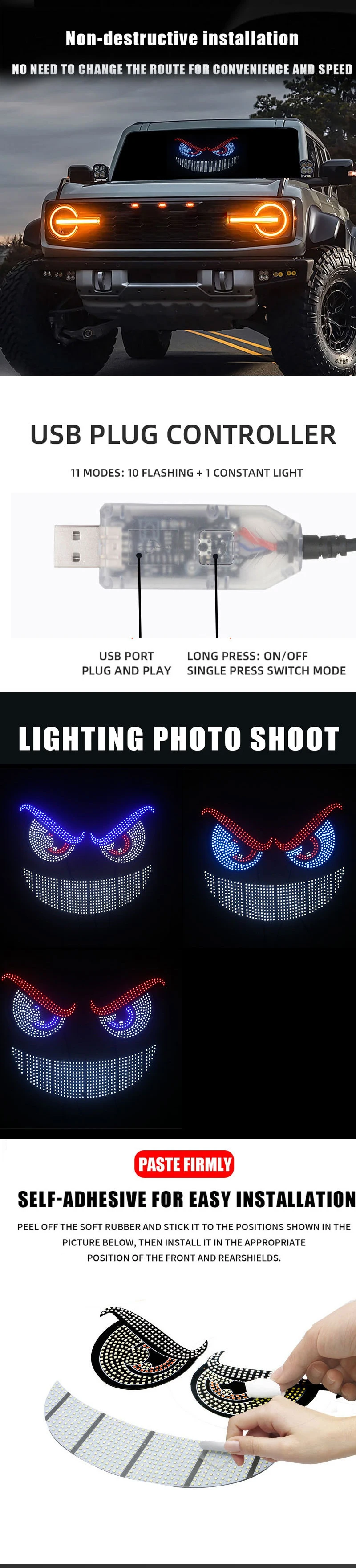 Affichage LED des yeux de camionContrôle intelligent de l'application : contrôle transparent via Bluetooth avec une application conviviale, permettant des animations et des motifs personnalisés pour votre panneau LED.