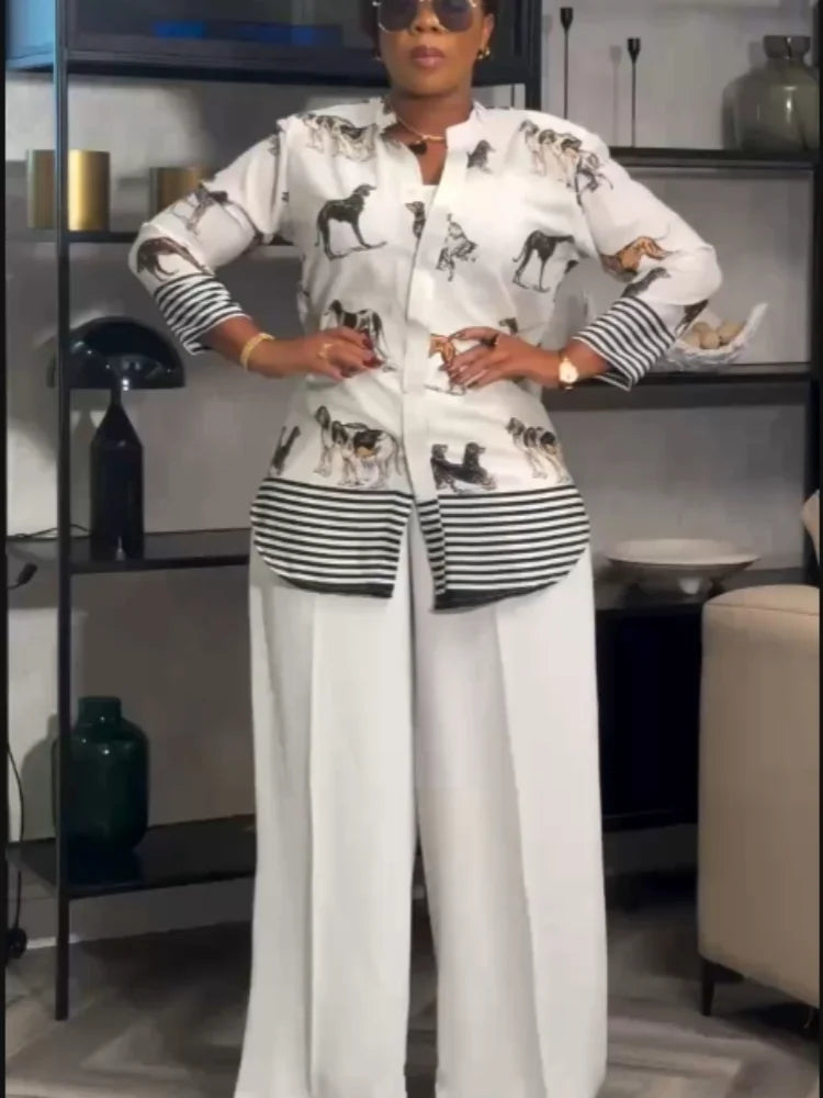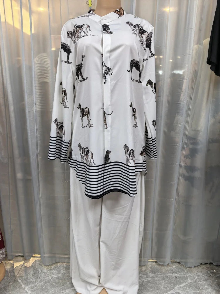 Ensemble Dashiki africain 2 pièces pour femmes, haut imprimé chien, pantalon ample, costume traditionnel, respirant, confortable, tenue décontractée, été