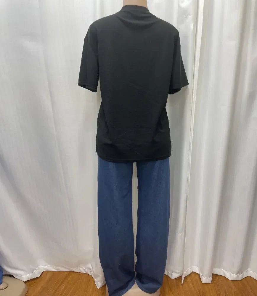 Ensemble dashiki en denim pour femmes, vêtements africains, nouvelle mode, haut à manches courtes et jeans moulants, tenue de soirée assortie pour dames, été, 2 pièces