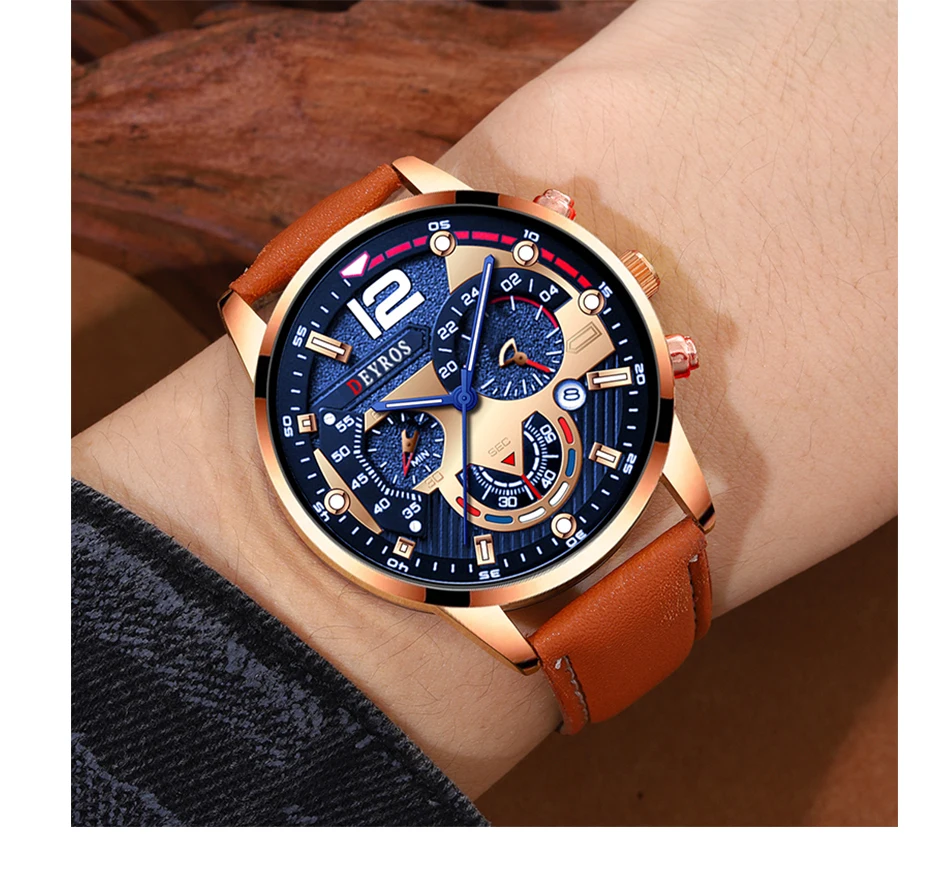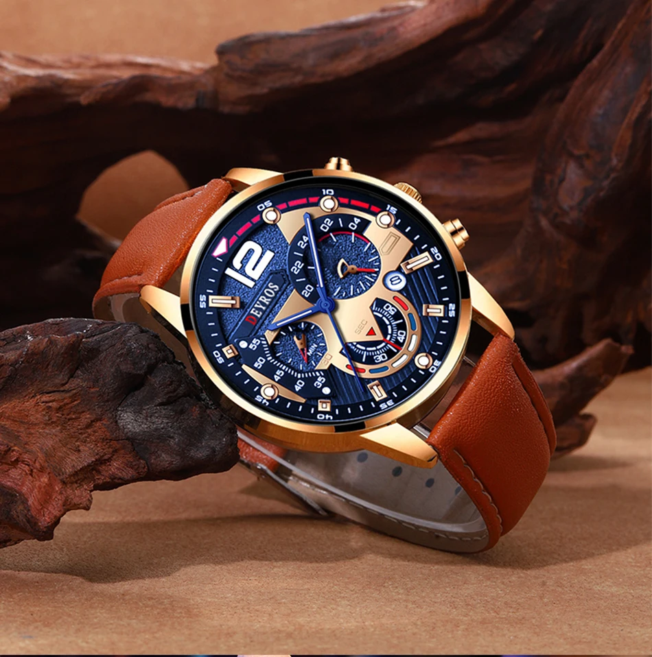 • Bracelet en cuir marron :Le bracelet en cuir marron de la montre ajoute une touche d'élégance et de sophistication à toute tenue.