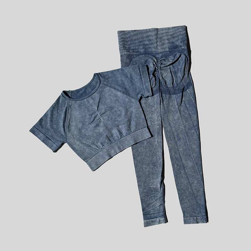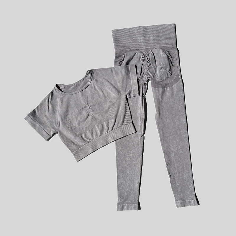 Ensemble de sport de lavage pour femmes, combinaison sans couture, haut de Fitness à manches courtes avec froissés sur les fesses, Leggings d'entraînement, vêtements de gymnastique