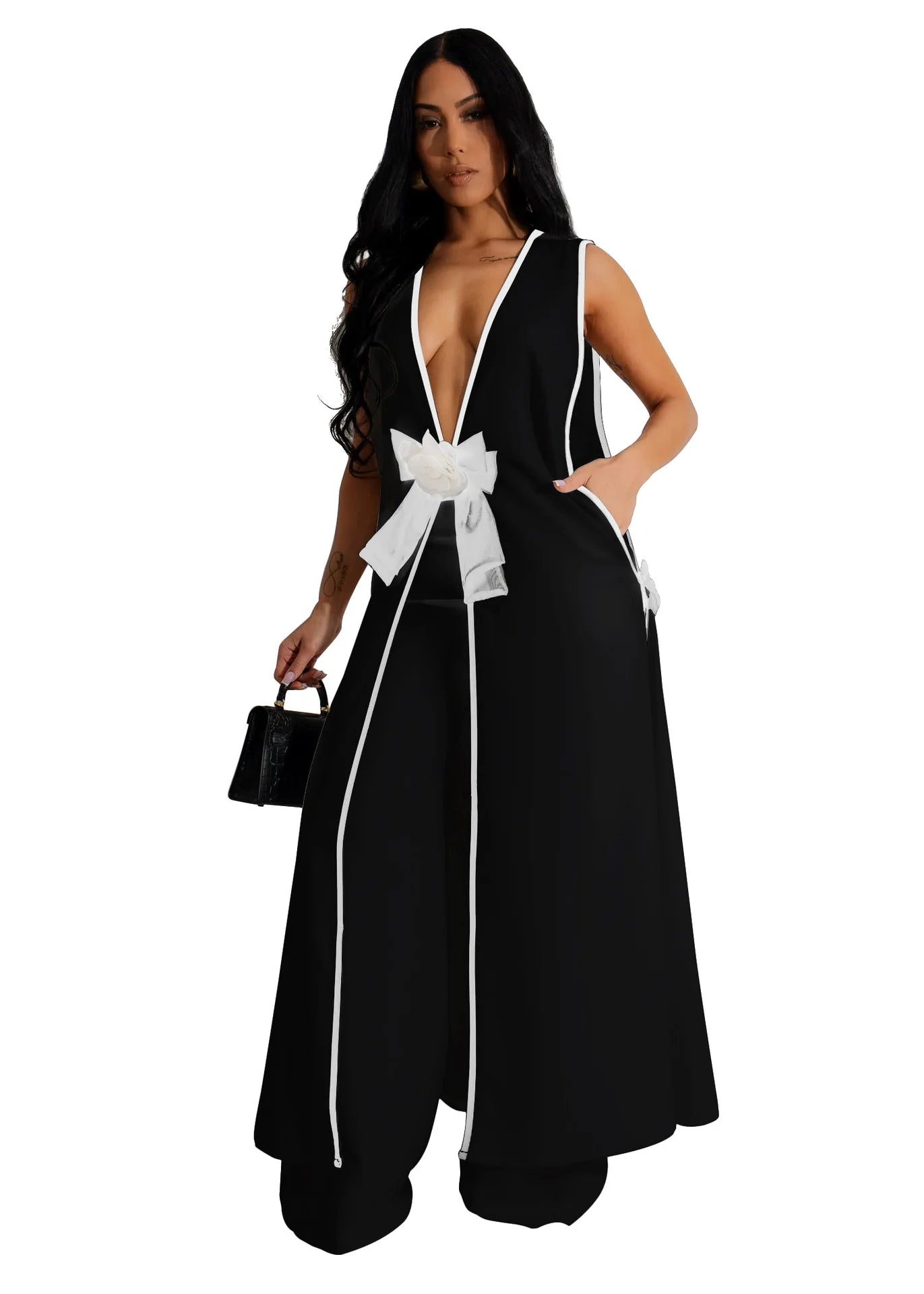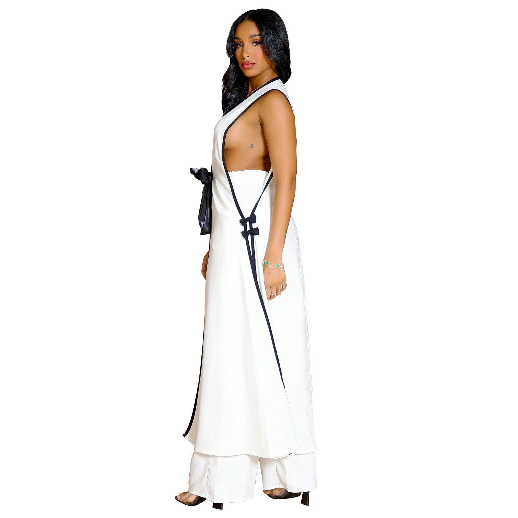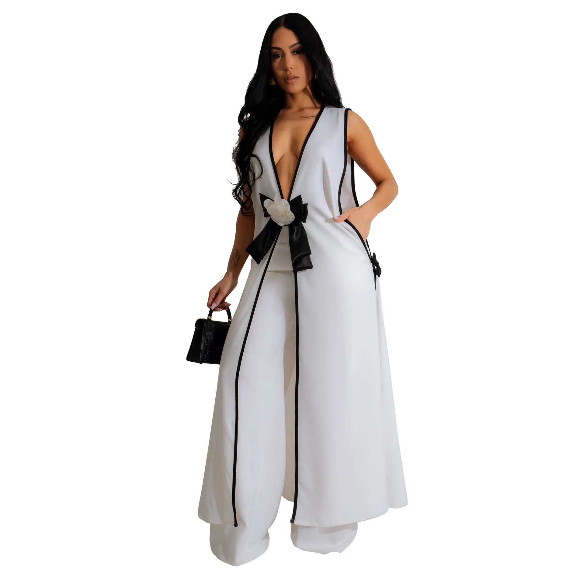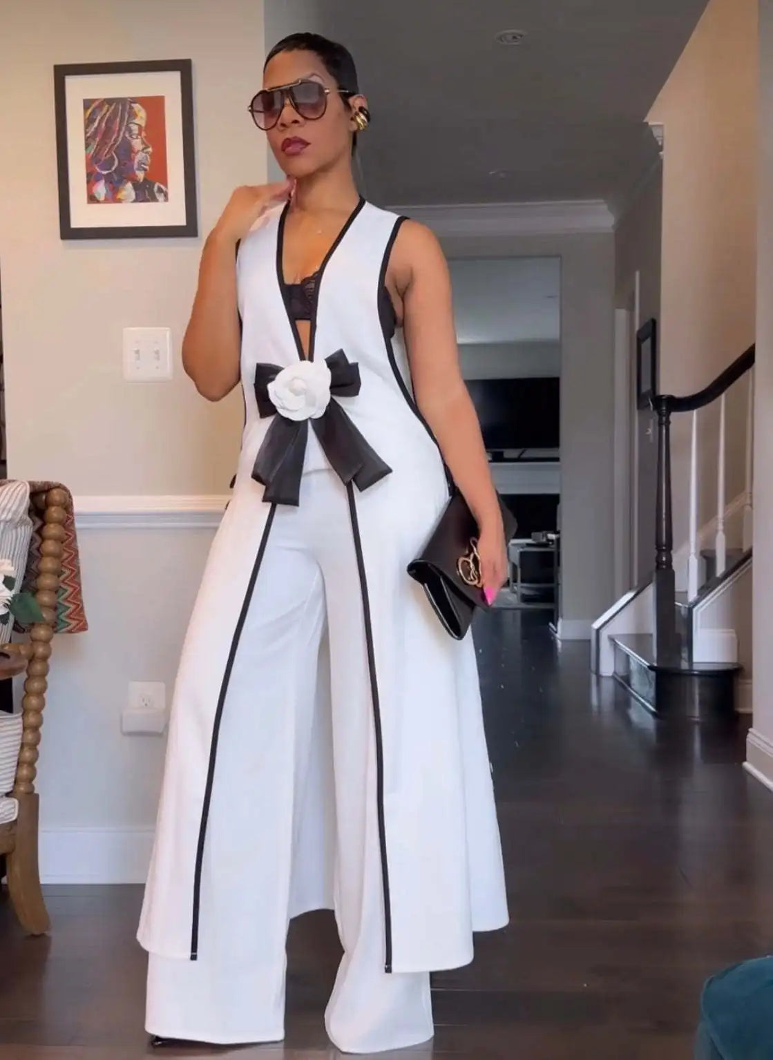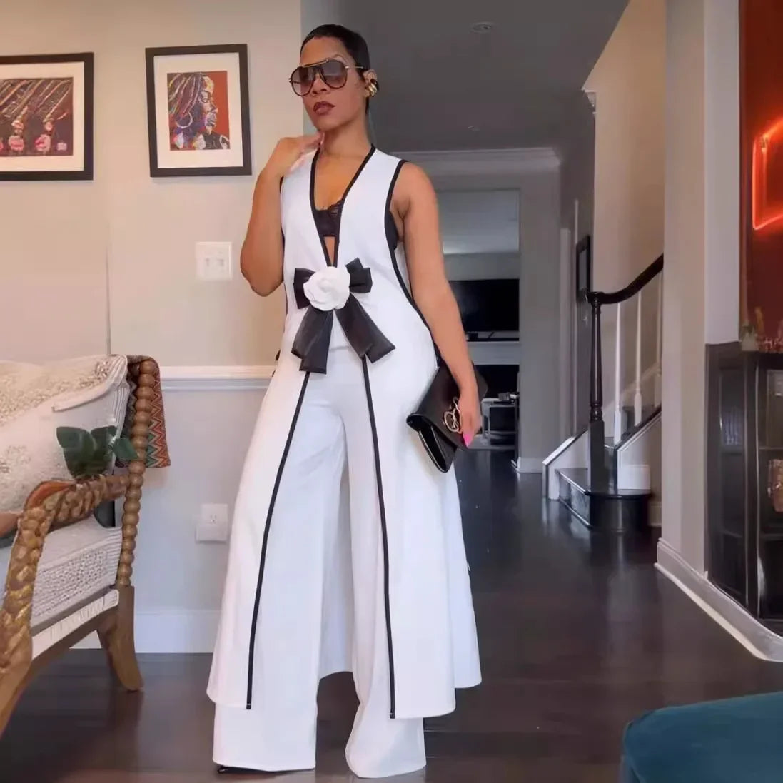 Ensemble de survêtement assressentipour femme, pantalon à glaçure épissée, pantalon à jambe large, longueur de rinçage, élégant, travail de rue, 2 pièces