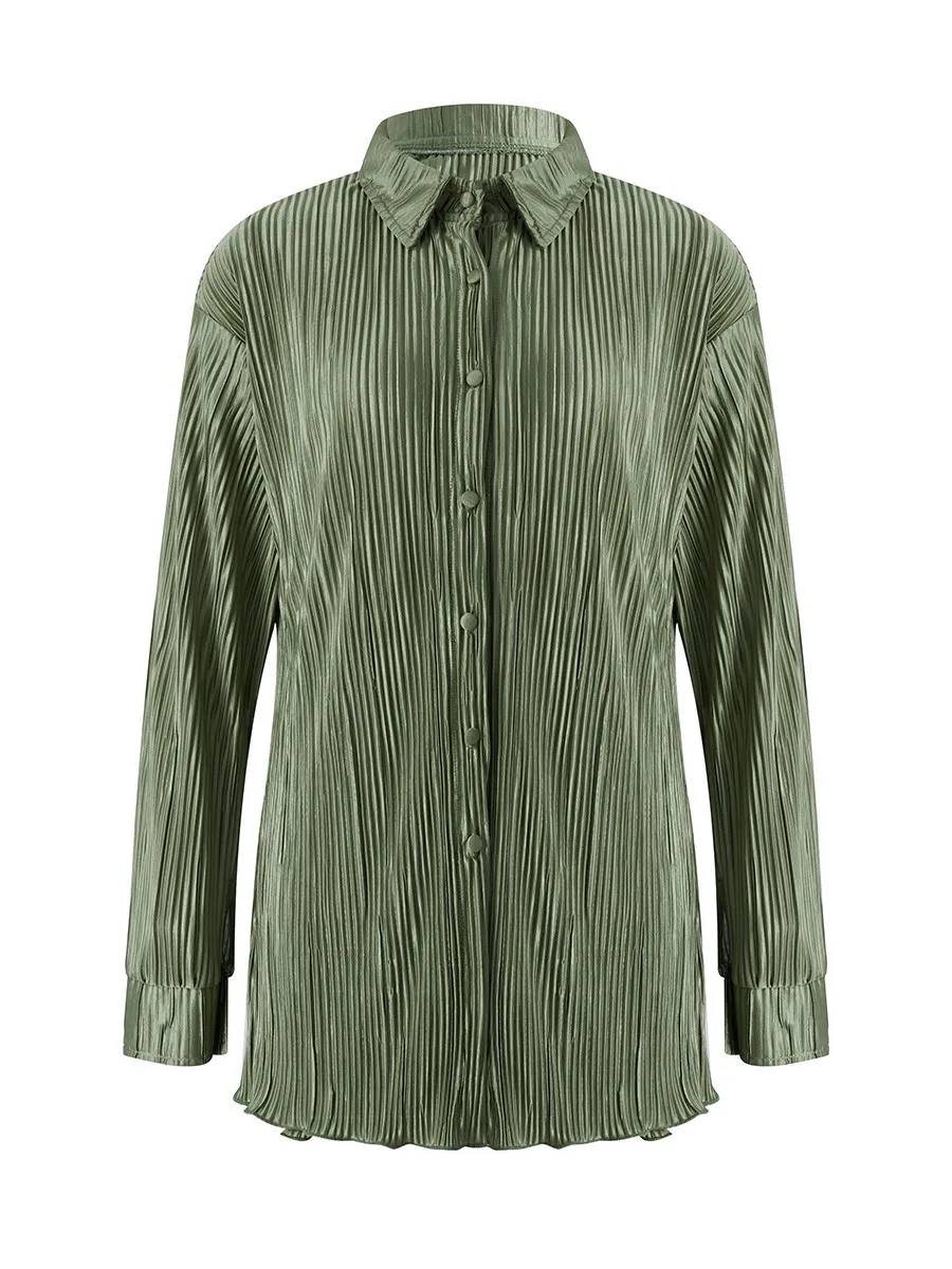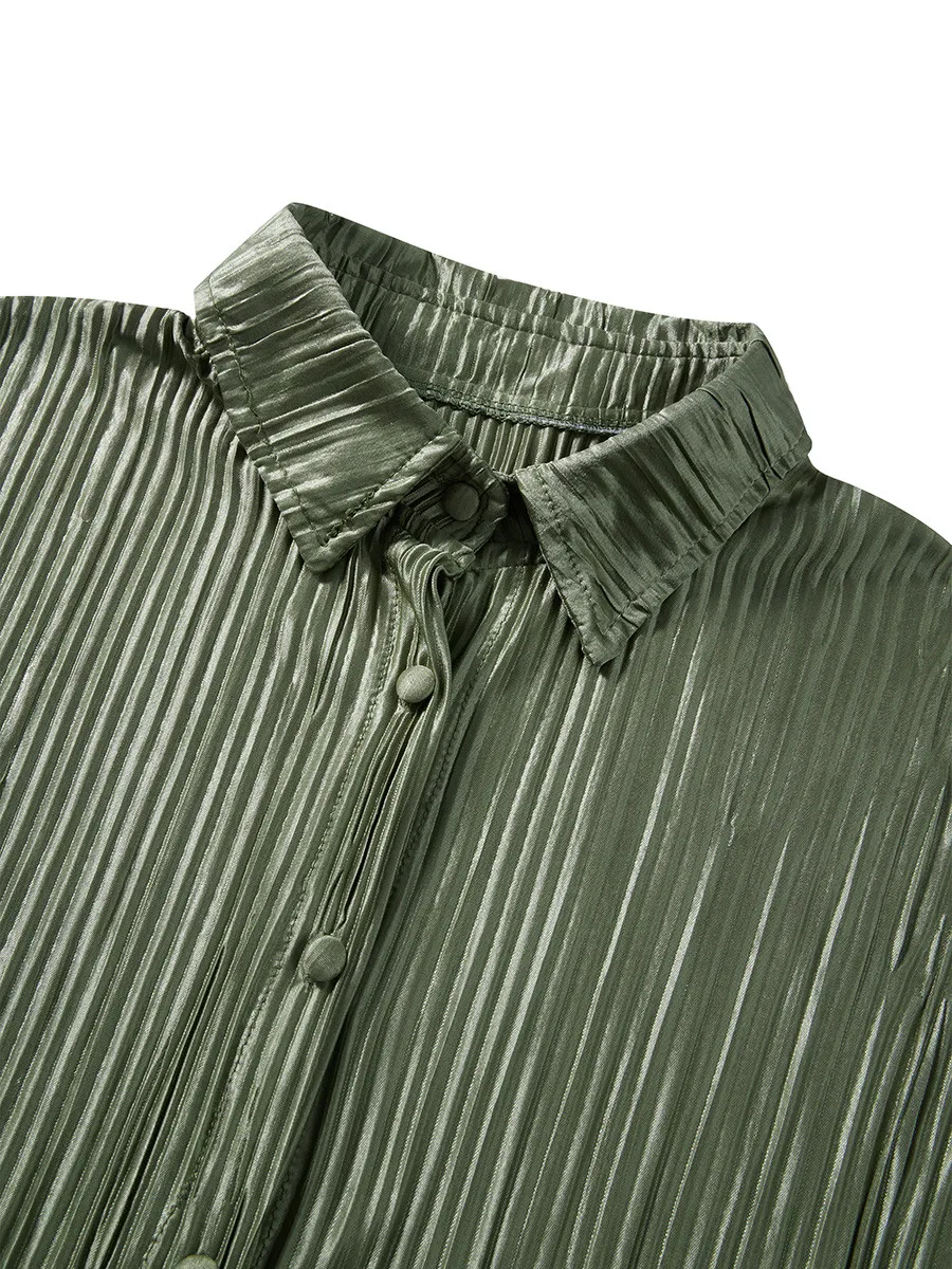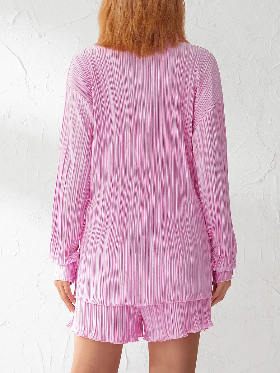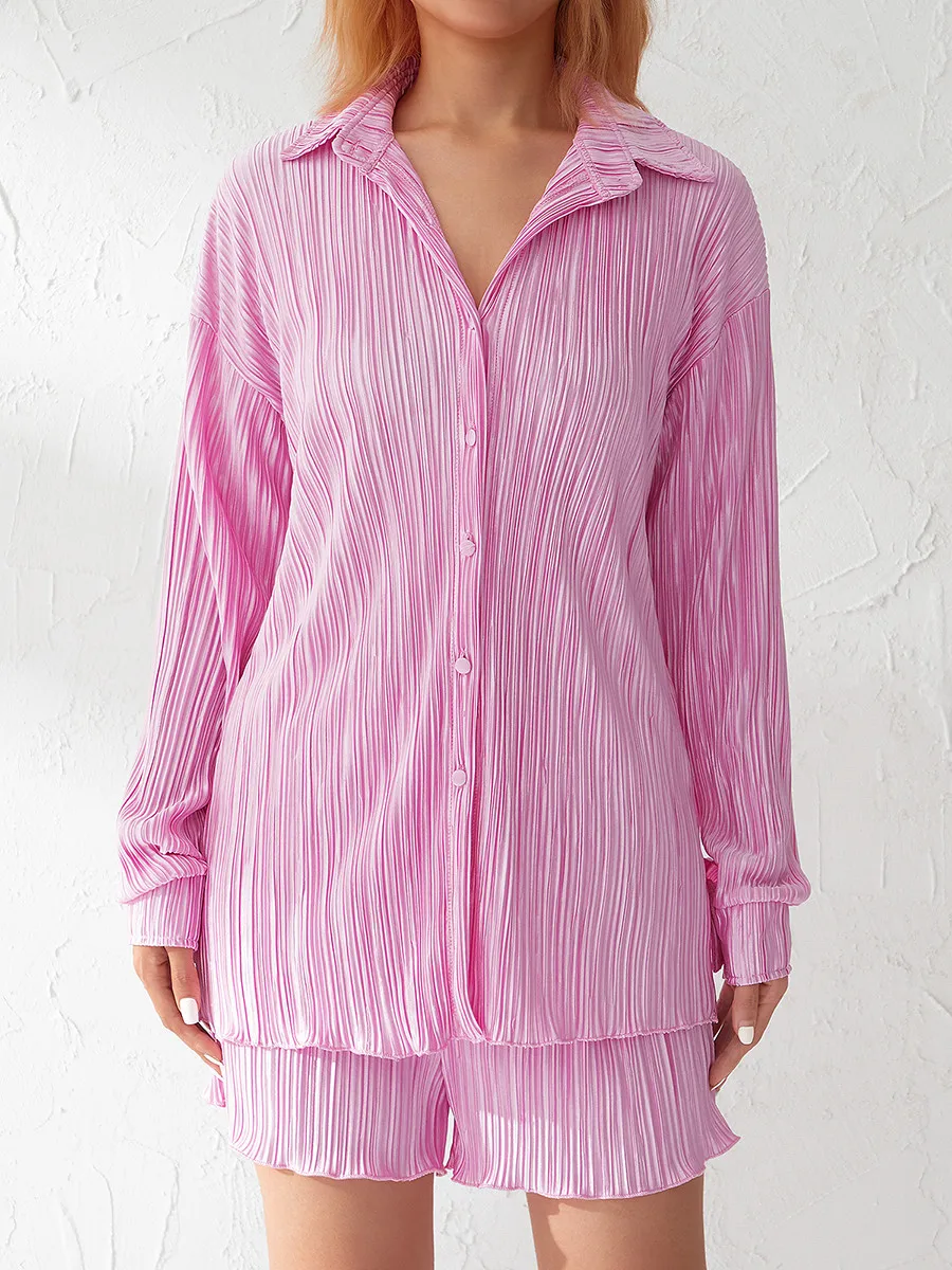 Ensemble de vêtements décontractés 2 pièces pour femmes Chemises boutonnées à manches longues et froncées de couleur unie avec short