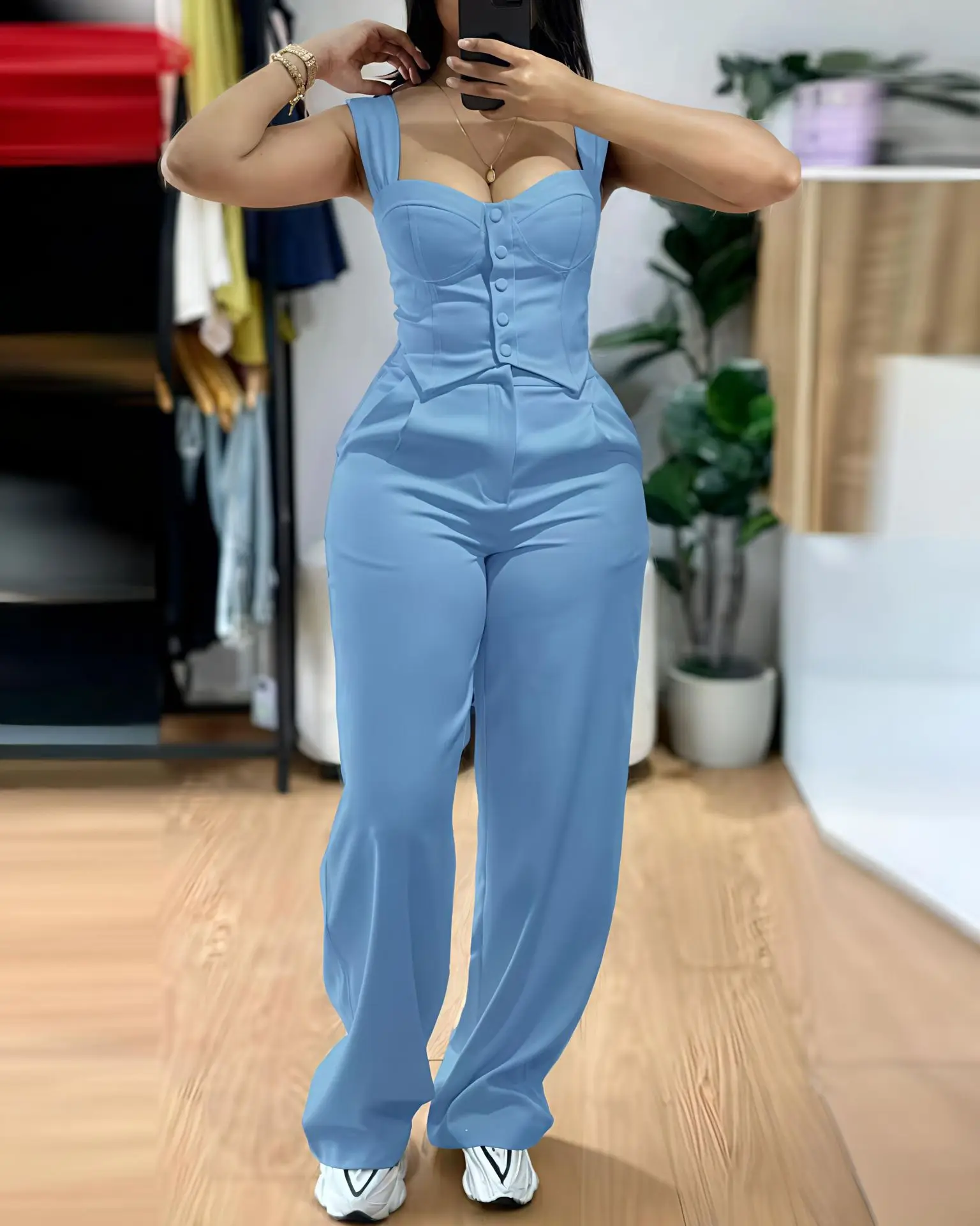Ensemble deux pièces débardeur sans manches pour femmes, gilet court d'été décontracté, haut Slim et pantalon à jambes larges, costume de bureau élégant