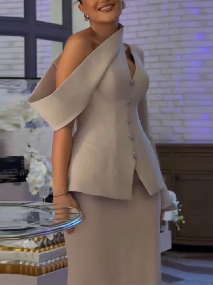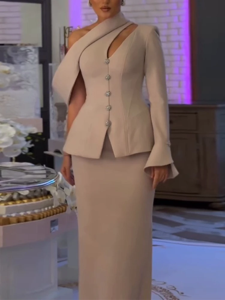 Ensemble deux pièces pour femmes, asymétrique épaule dénudée, haut asymétrique, jupe de hanche, mode élégante, Slim, robe de soirée, boîte de nuit