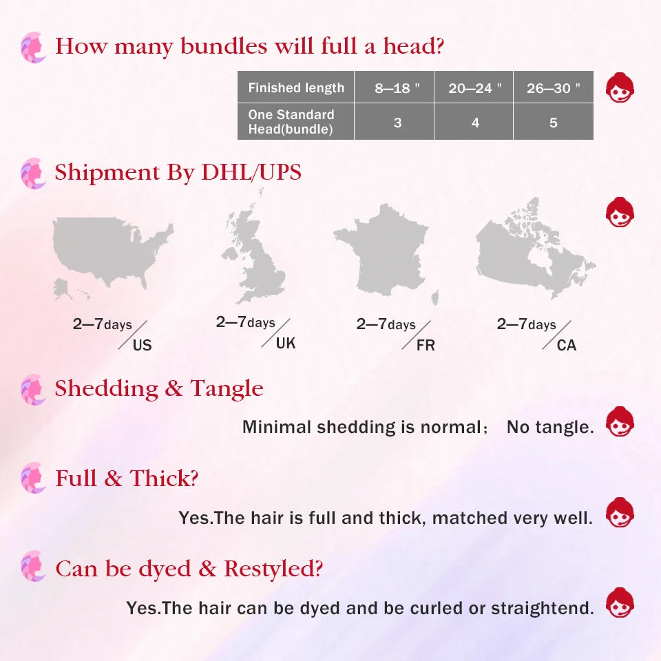 For Full Head: 3-6pcs make a Full Head