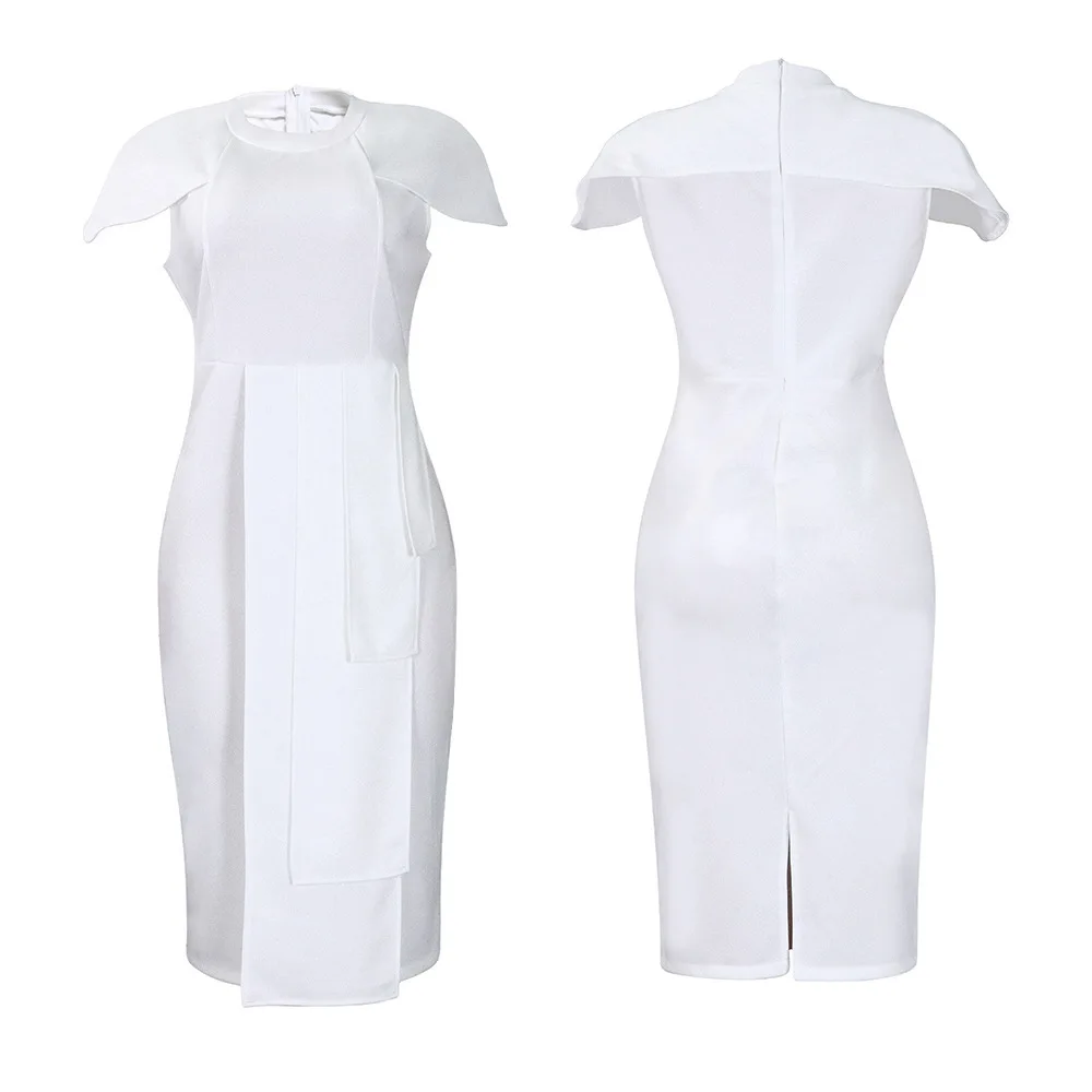 FairyShely-Robe drapée à manches courtes pour femmes, robe de soirée sexy, grande taille, monochromatique, grandes robes à volants pour dames, robe curvy serrée, 2025
