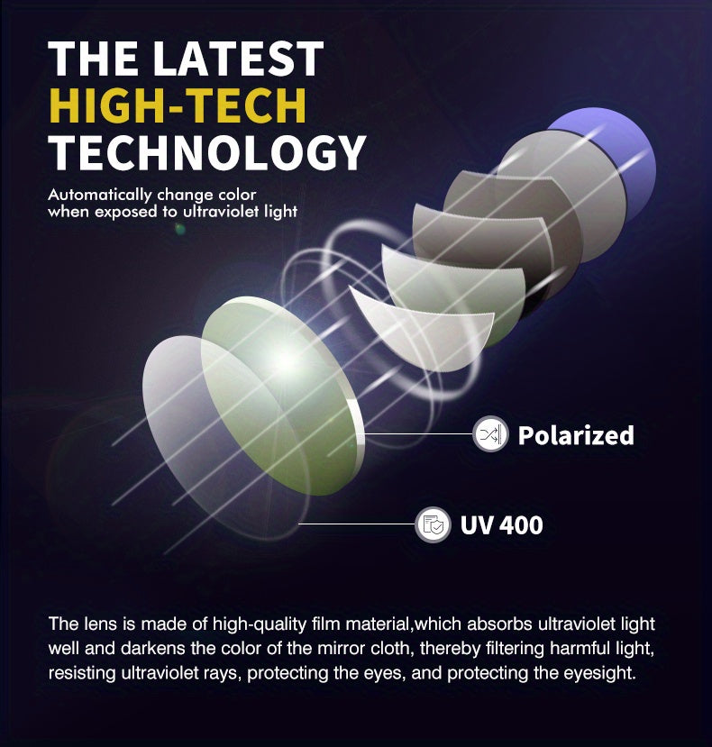 An Important Note About Photochromic Lenses: Because They React To UV Light And Not To Visible Light, There Are Circumstances Under Which The Darkening Will Not Occur. Frist Example, Is In Your Car.Because The Windshield Blocks Out Most UV Light. Second,is Indoors Test With Ordinary Lighting(Because The Lighting Used In Daily Lighting Does Not Contain Ultraviolet Light),photochromic Lenses Will Not Darken.