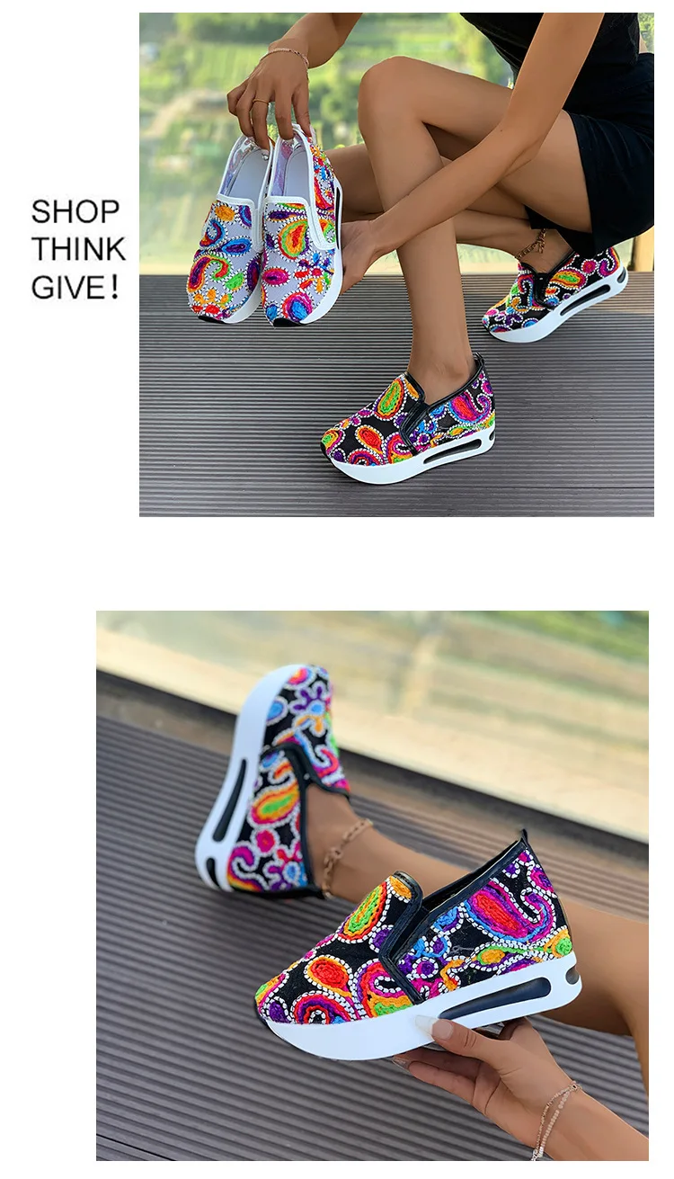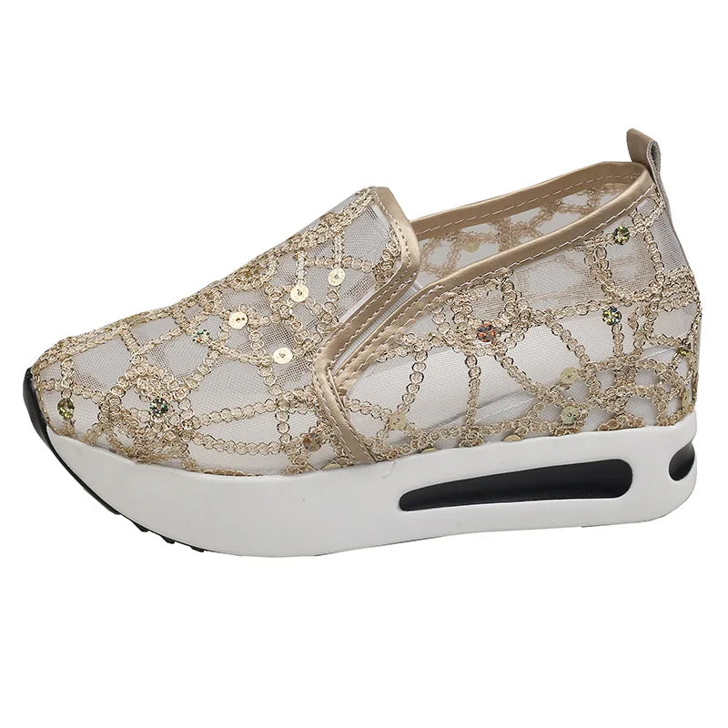 Femmes baskets nouvelle broderie plate-forme épaisse baskets femmes respirant maille mocassins printemps automne sans lacet chaussures décontractées pour les femmes