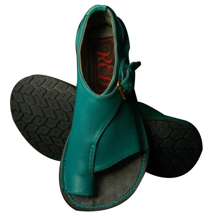 Sandales de plage d'été pour femmes, nouvelles sandales en cuir PU, à la mode, bout ouvert, boucle, sandales romaines, chaussures plates pour femmes, 2021