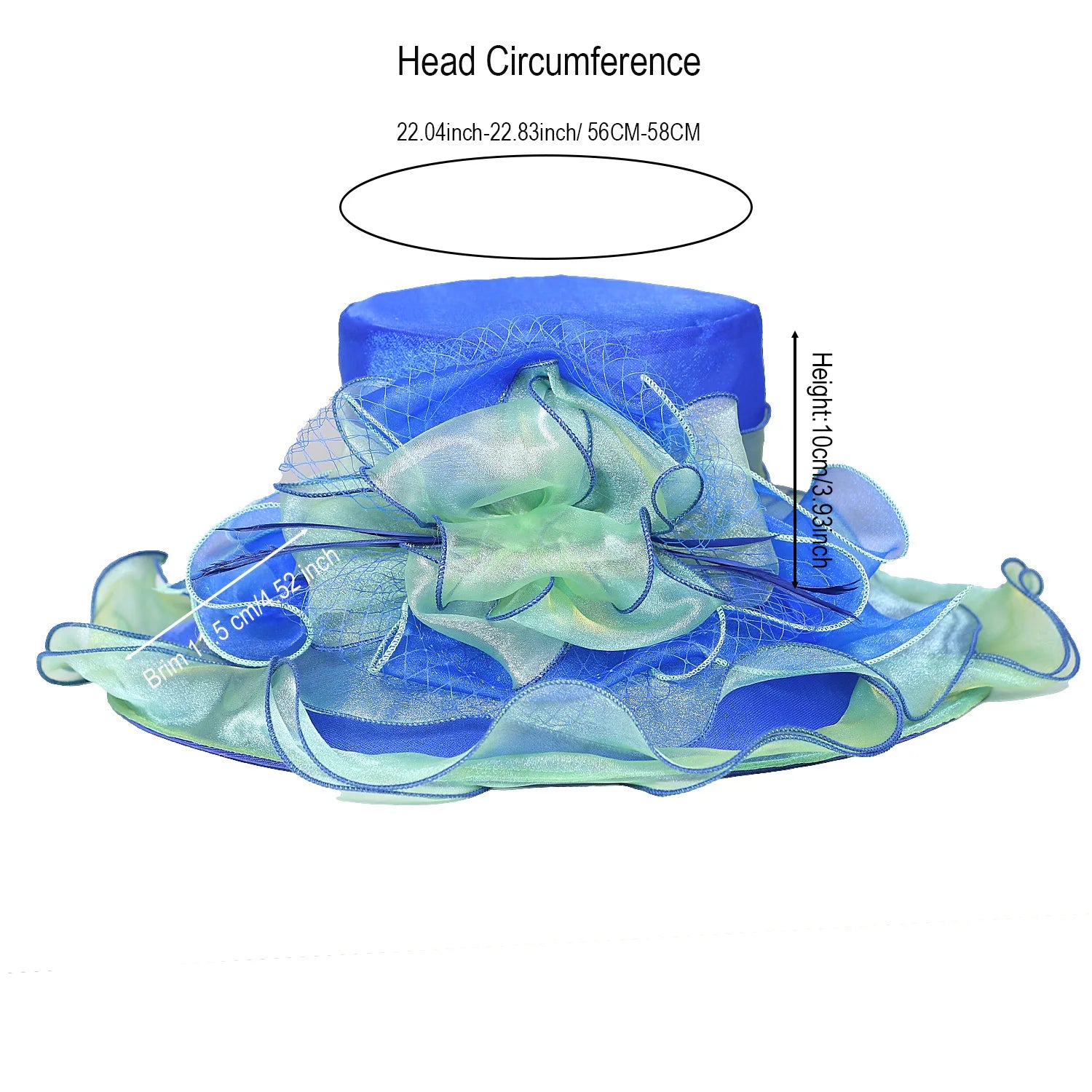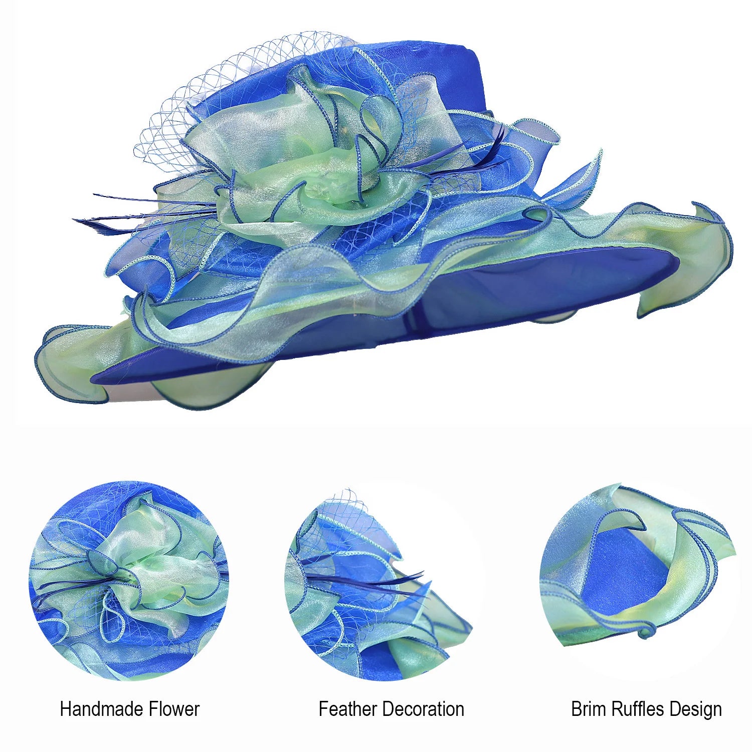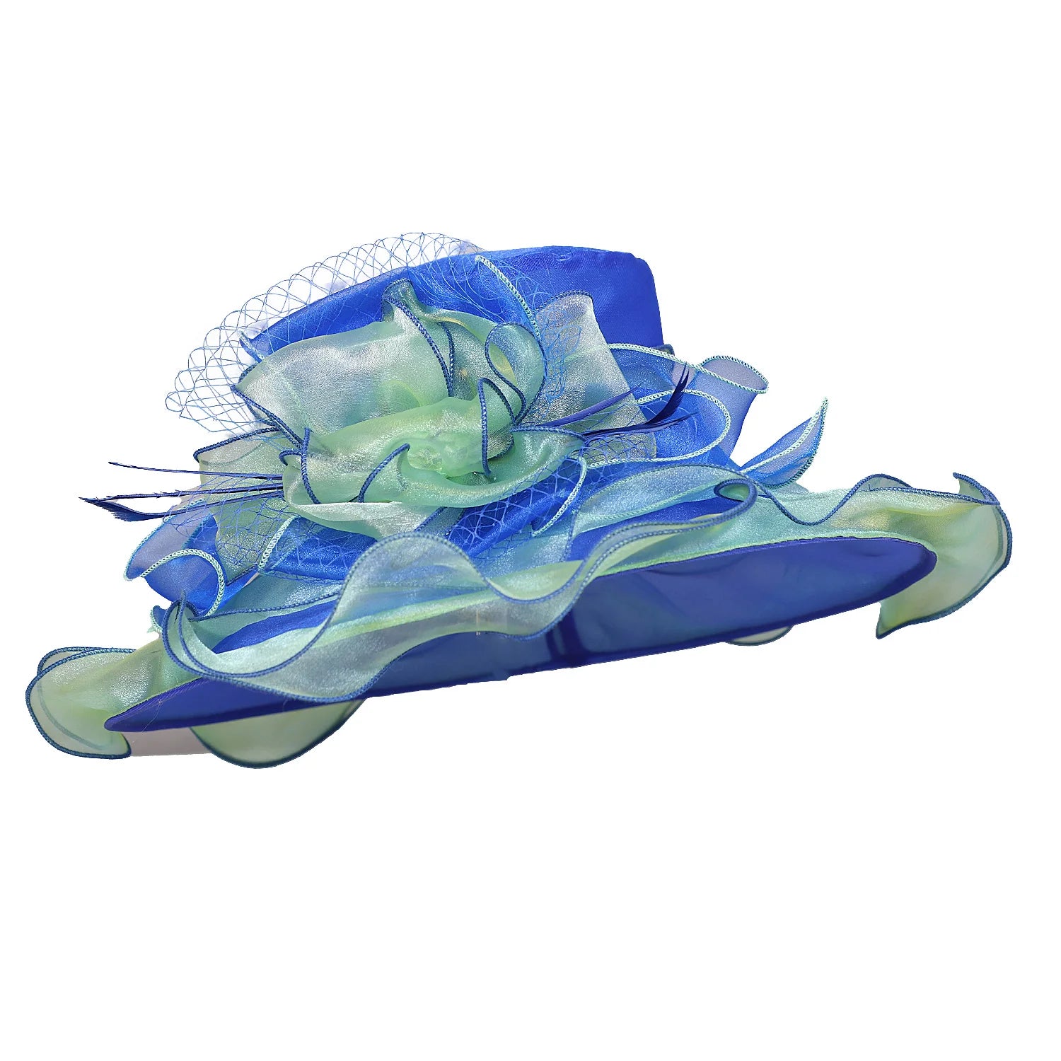 FS bleu vert Organza Kentucky Derby chapeaux femmes élégant large bord été plage parasol chapeaux de soleil fleur mariage mariée Fedoras