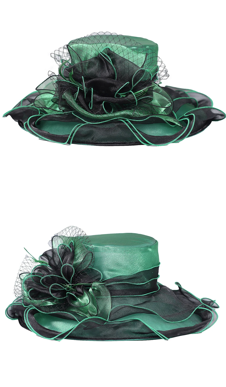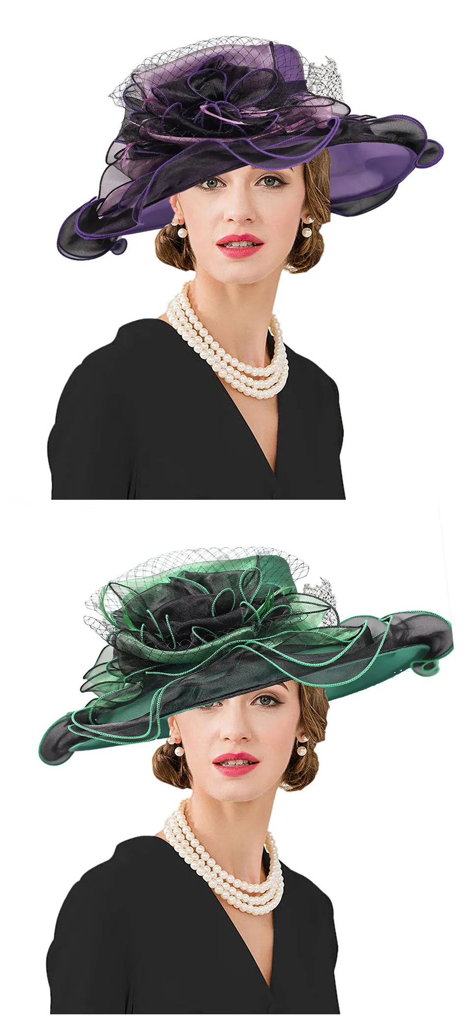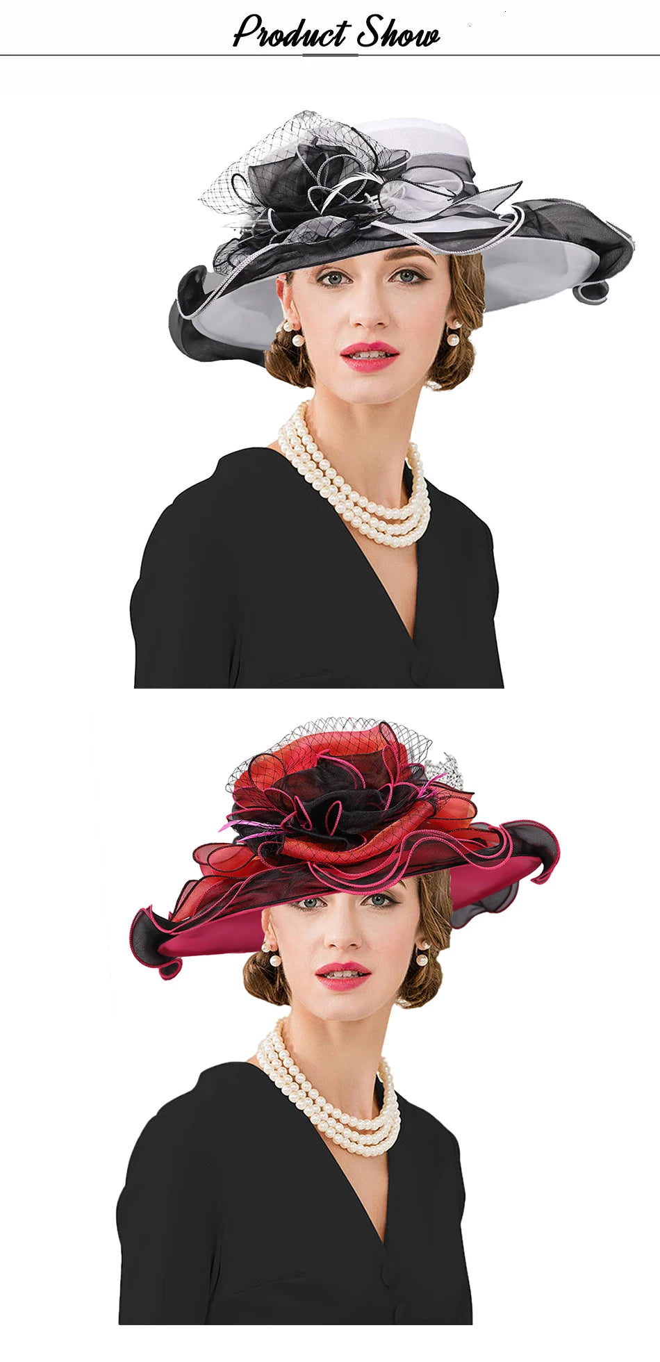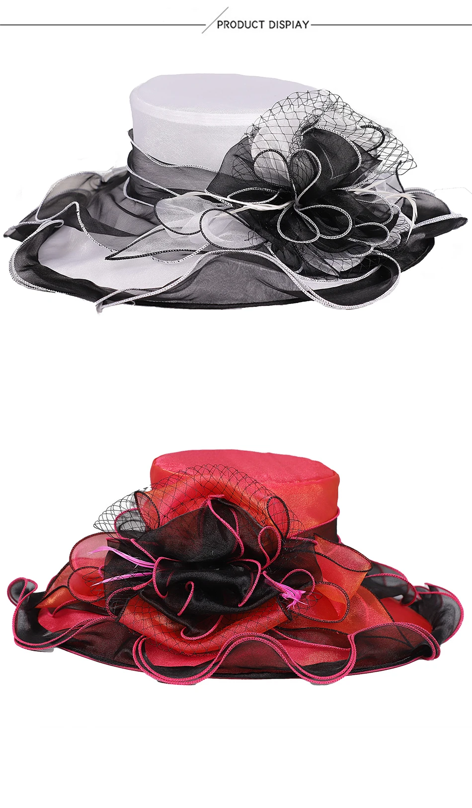 FS bleu vert Organza Kentucky Derby chapeaux femmes élégant large bord été plage parasol chapeaux de soleil fleur mariage mariée Fedoras