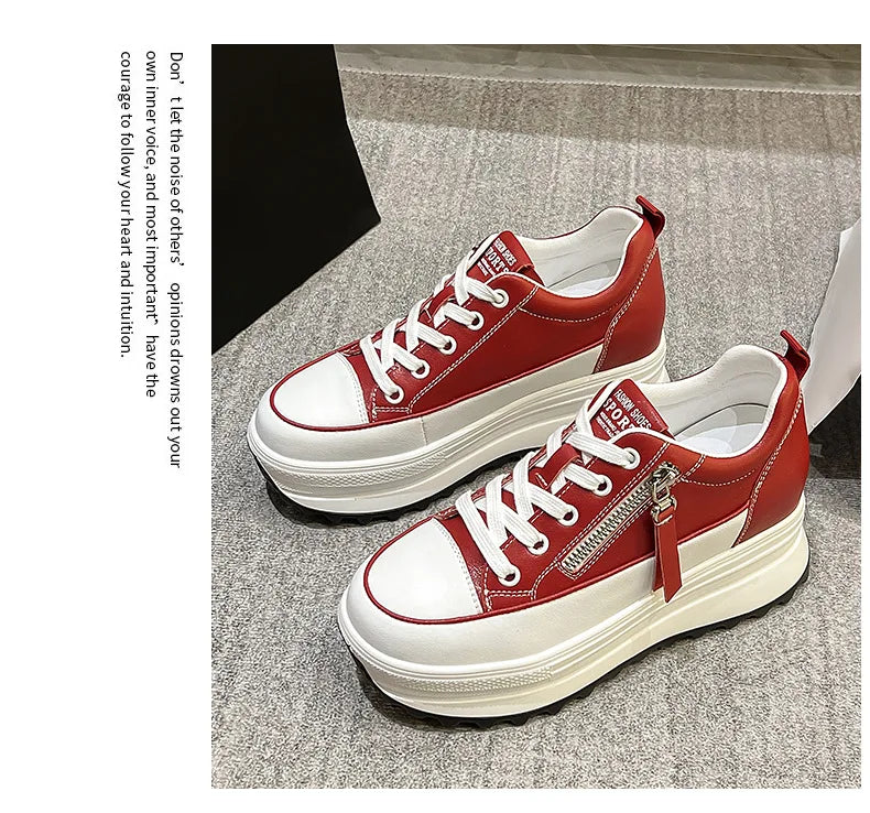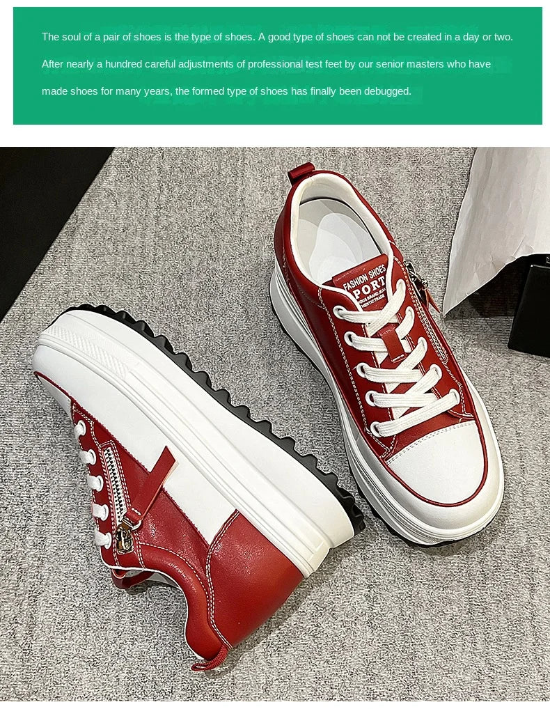 Fujin 7 cm en cuir véritable femmes chaussures décontractées 7 cm plate-forme compensée femme mode baskets gros printemps automne chaussures été