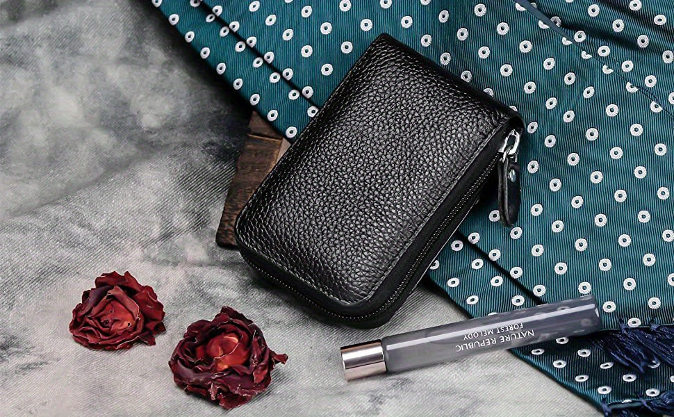 Genuine Leather RFID Blocking Credit Card Wallet for Men with Zipper