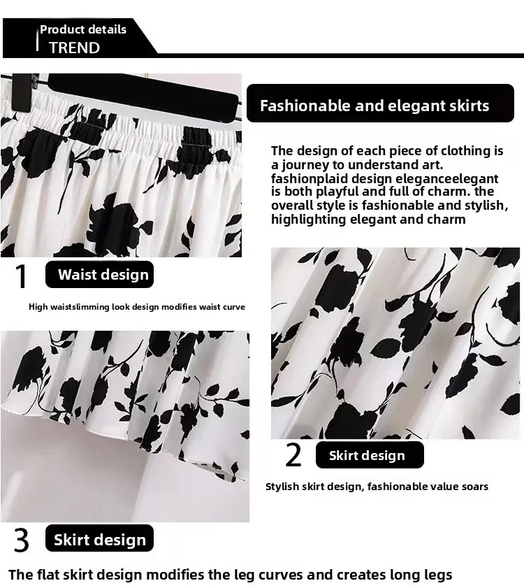 • Motif Rose de style occidental :Dotée d'un charmant motif rose de style occidental, cette jupe ajoute une touche d'élégance et de féminité à votre garde-robe d'été.